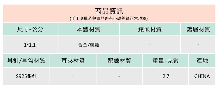 ◆耳環屬個人衛生用品,一經開封恕不退換。