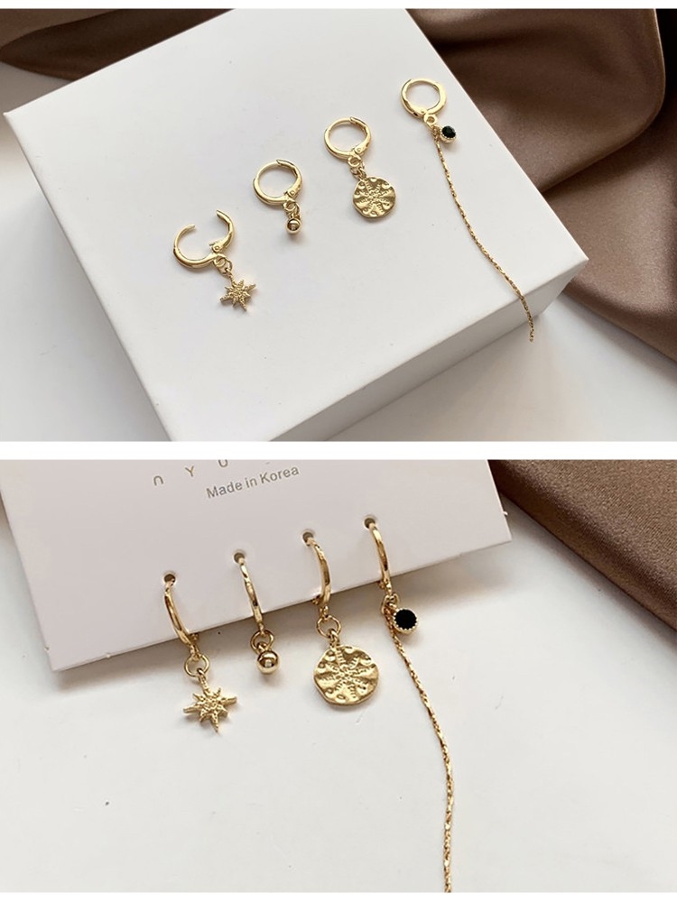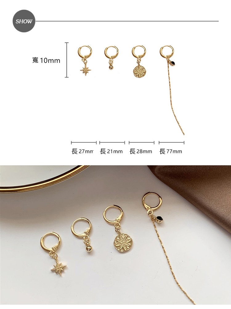【00:00】韓國設計INS風設計感星星圓球長流蘇四件式耳環