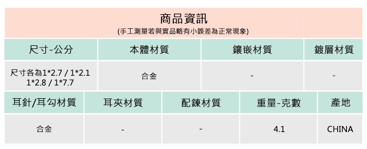 ◆耳環屬個人衛生用品,一經開封恕不退換。