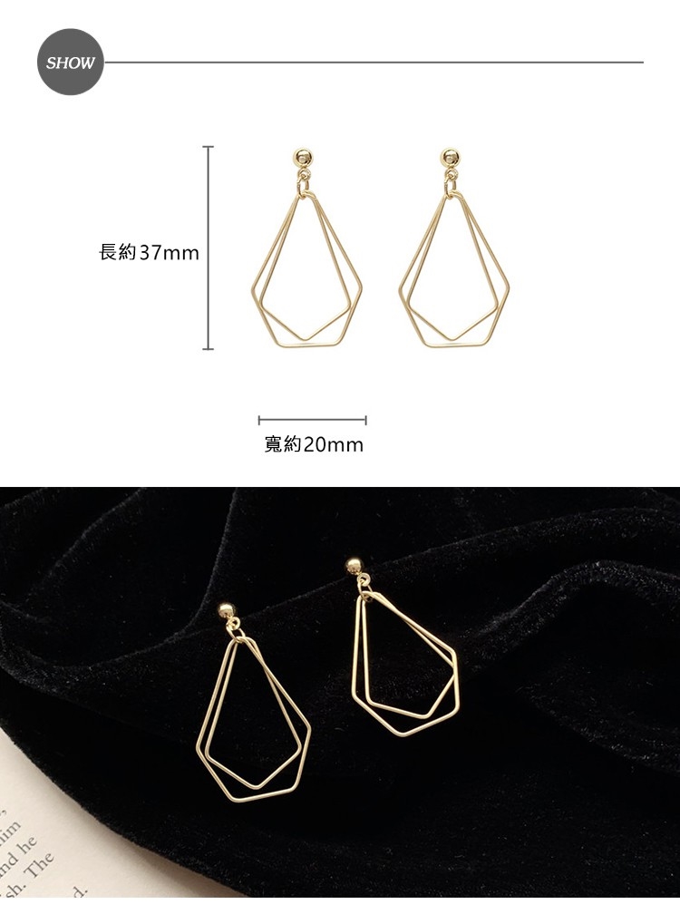 【00:00】韓國設計S925銀針幾何五邊形線條個性耳環