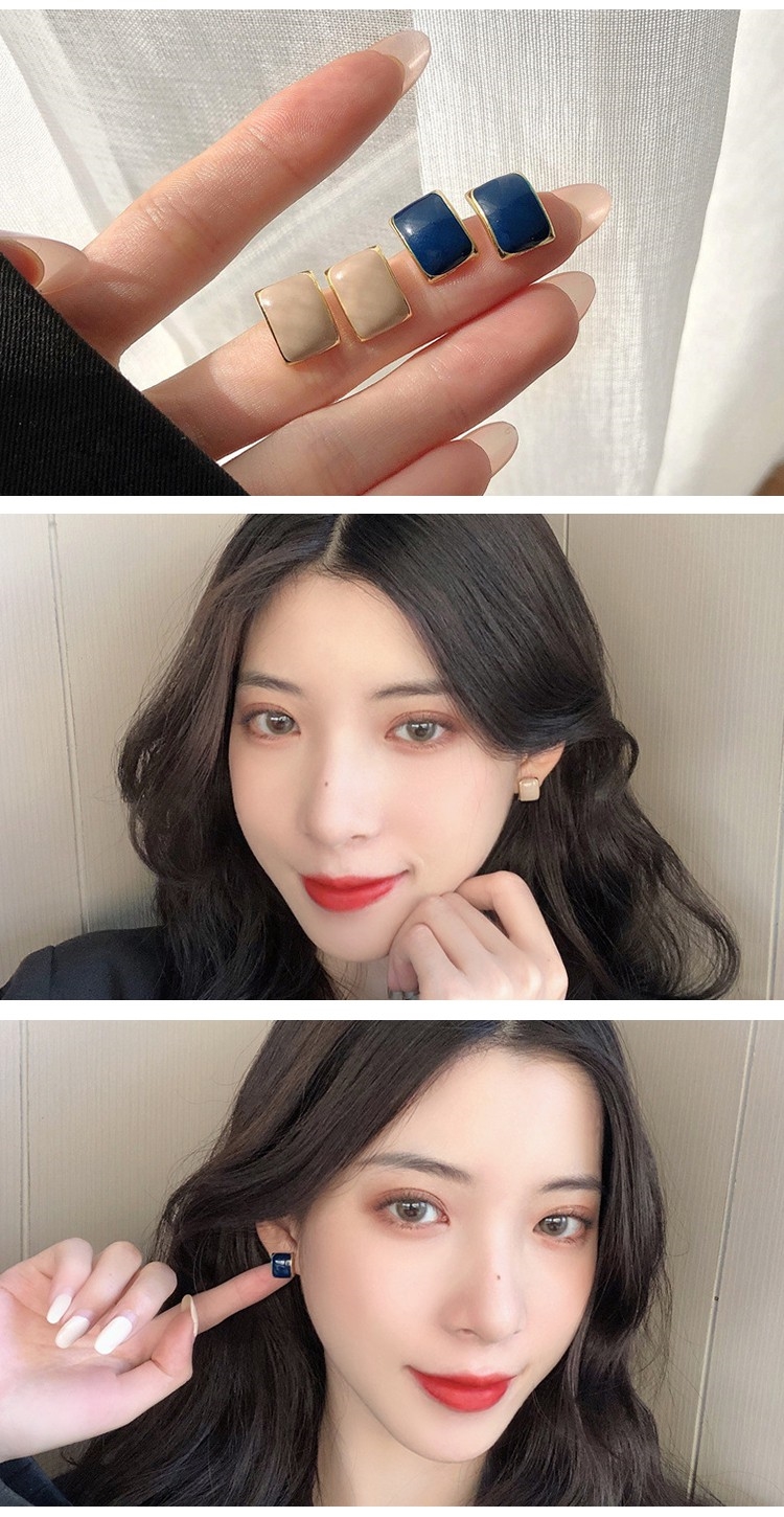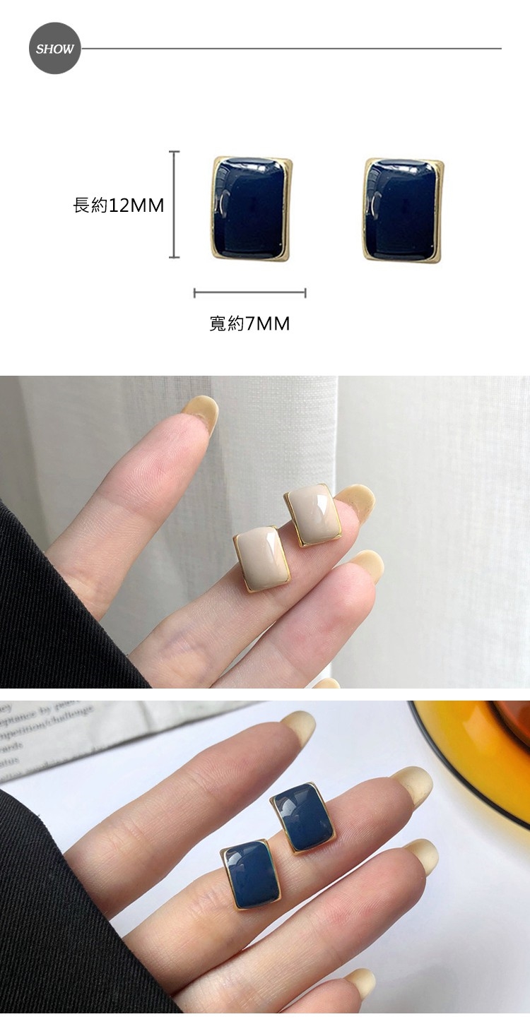 【INES】韓國設計S925銀針法式方形滴釉復古耳環 (2色任選)