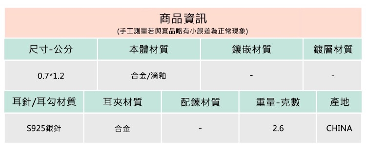 ◆耳環屬個人衛生用品,一經開封恕不退換。