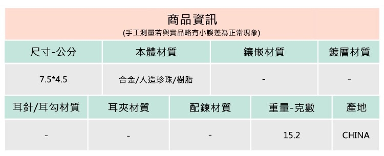 ◆合金飾品一經使用可能隨時間失去光澤或褪色,此為正常物理現象,妥善使用保存可延長飾品壽命。