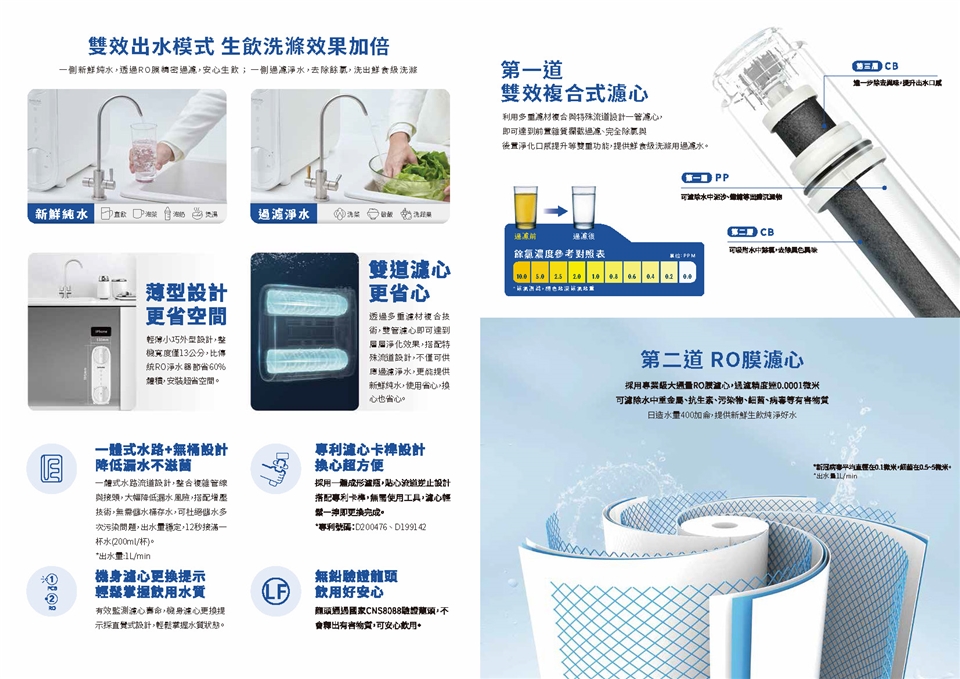 ● 雙濾心設計,機身更輕薄,更省空間
