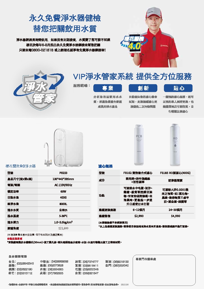 ● 商品名稱:SAKURA櫻花牌 P0233即雙效RO淨水器