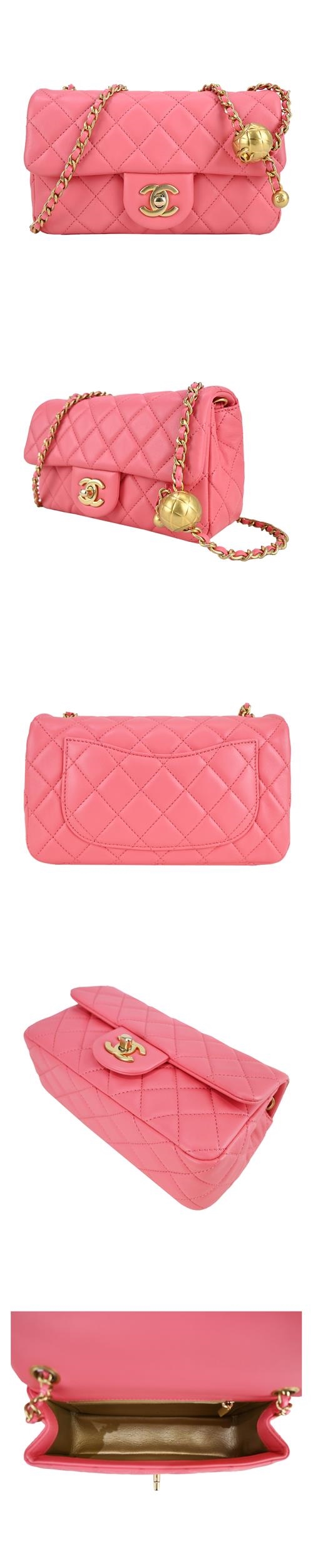 CHANEL 香奈兒 經典Mini coco 20 菱格粒紋小羊皮金球口蓋包(珊瑚色)