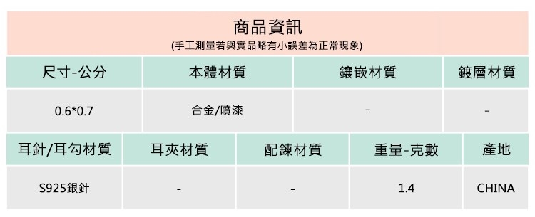 ◆耳環屬個人衛生用品,一經開封恕不退換。