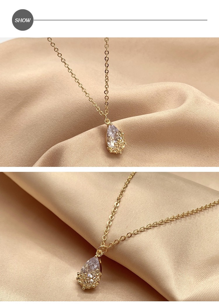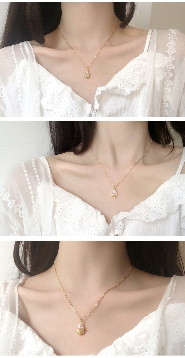【SECRET BOX】韓國設計法式浪漫水滴寶石鎖骨鍊