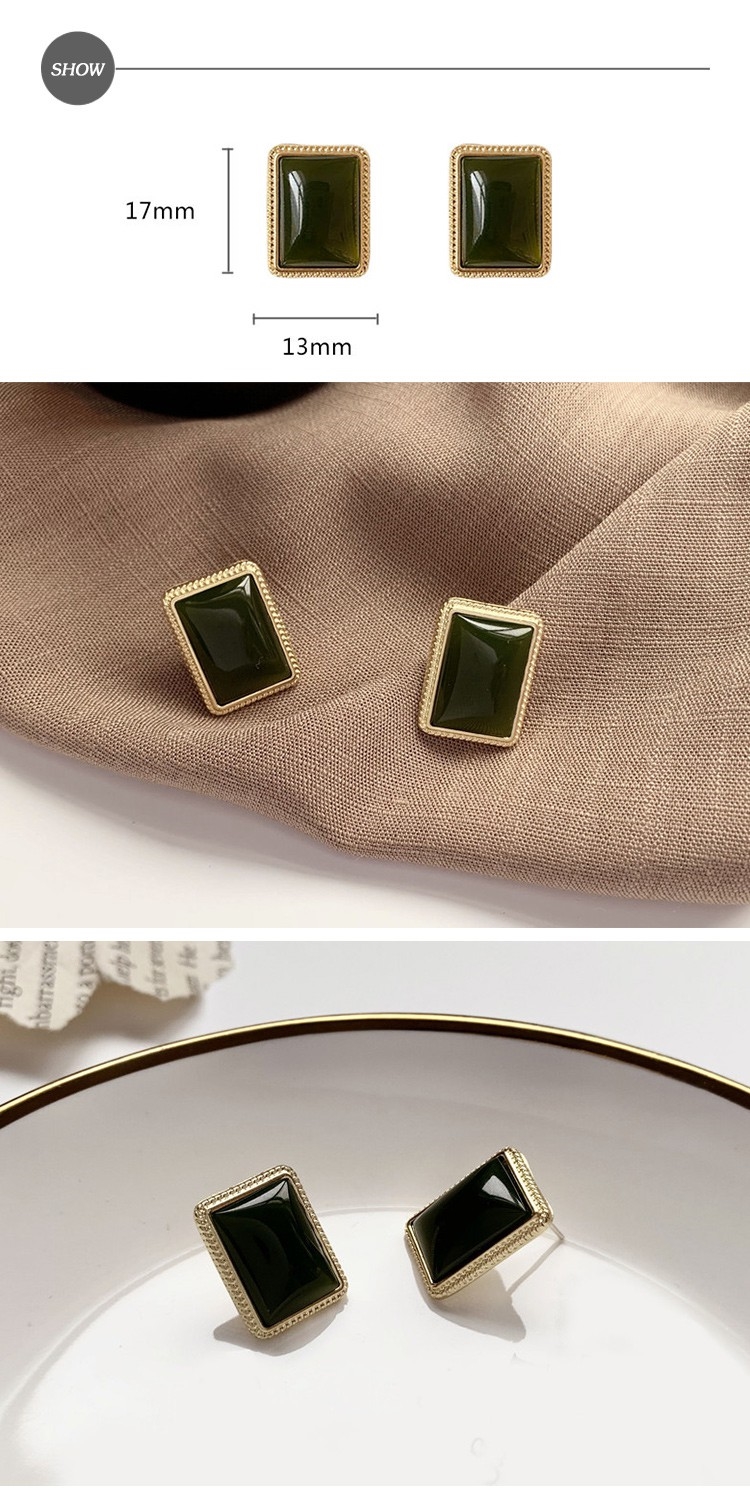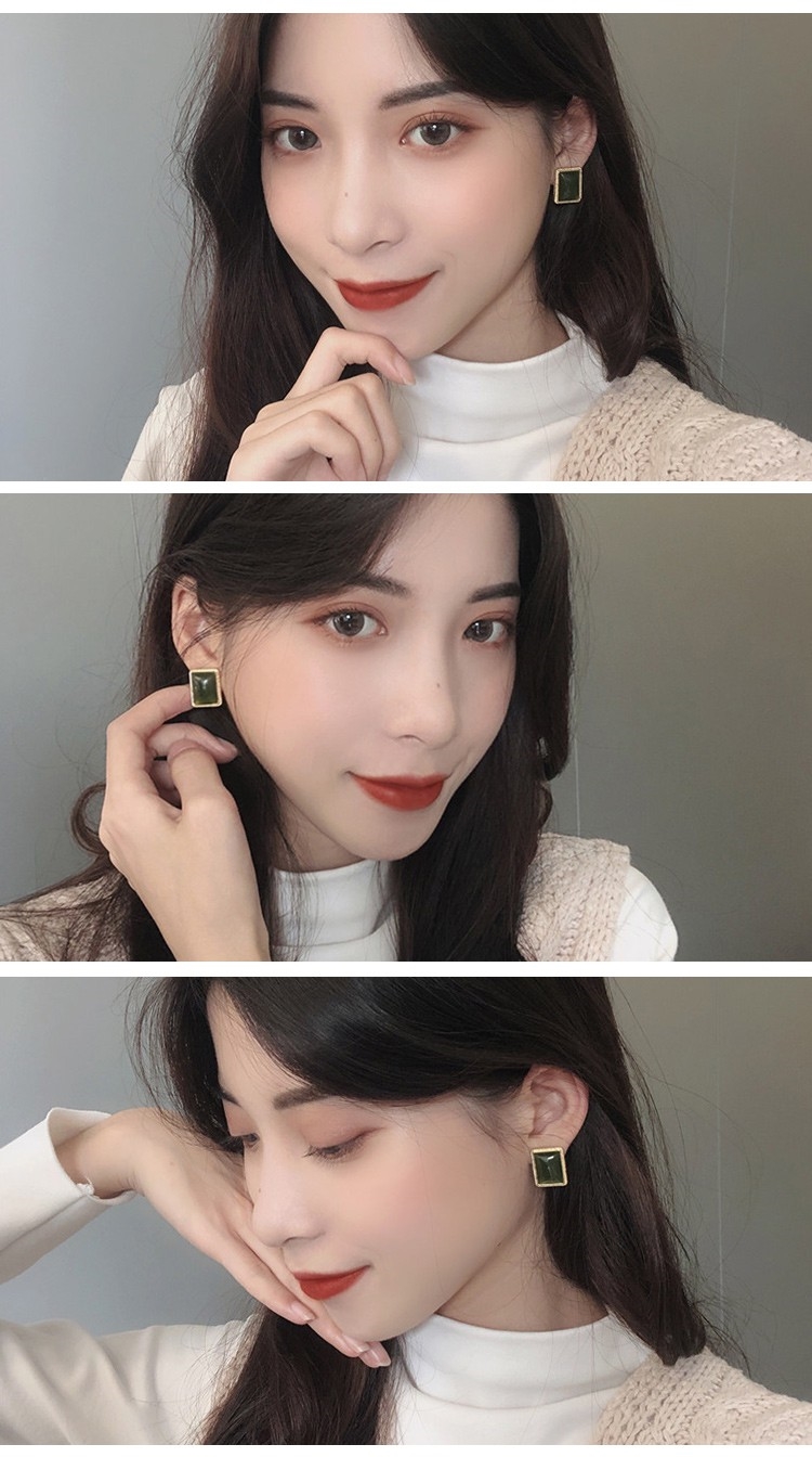 【INES】韓國設計S925銀針幾何方形寶石耳環