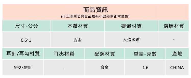 ◆耳環屬個人衛生用品,一經開封恕不退換。