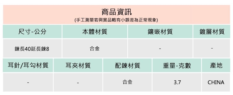 ◆因各人肌膚狀況對於合金金屬之耐受度不同,若為敏感肌膚