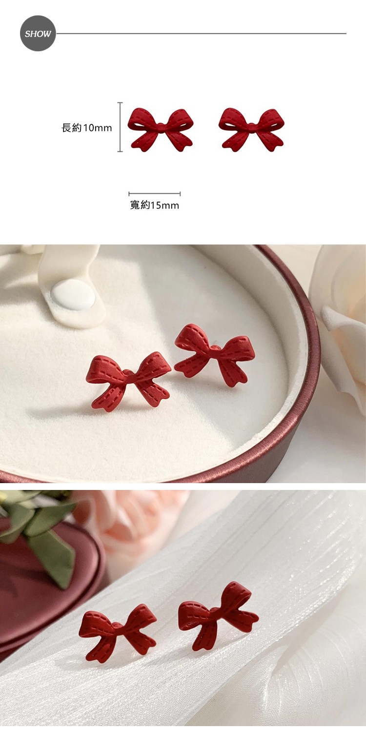 【MISA】韓國設計S925銀針少女心復古縫線蝴蝶結造型耳環