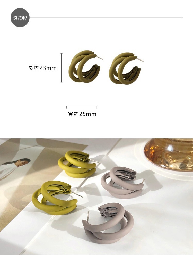 【INES】韓國設計S925銀針法式復古多層次C圈造型耳環 (2色任選)