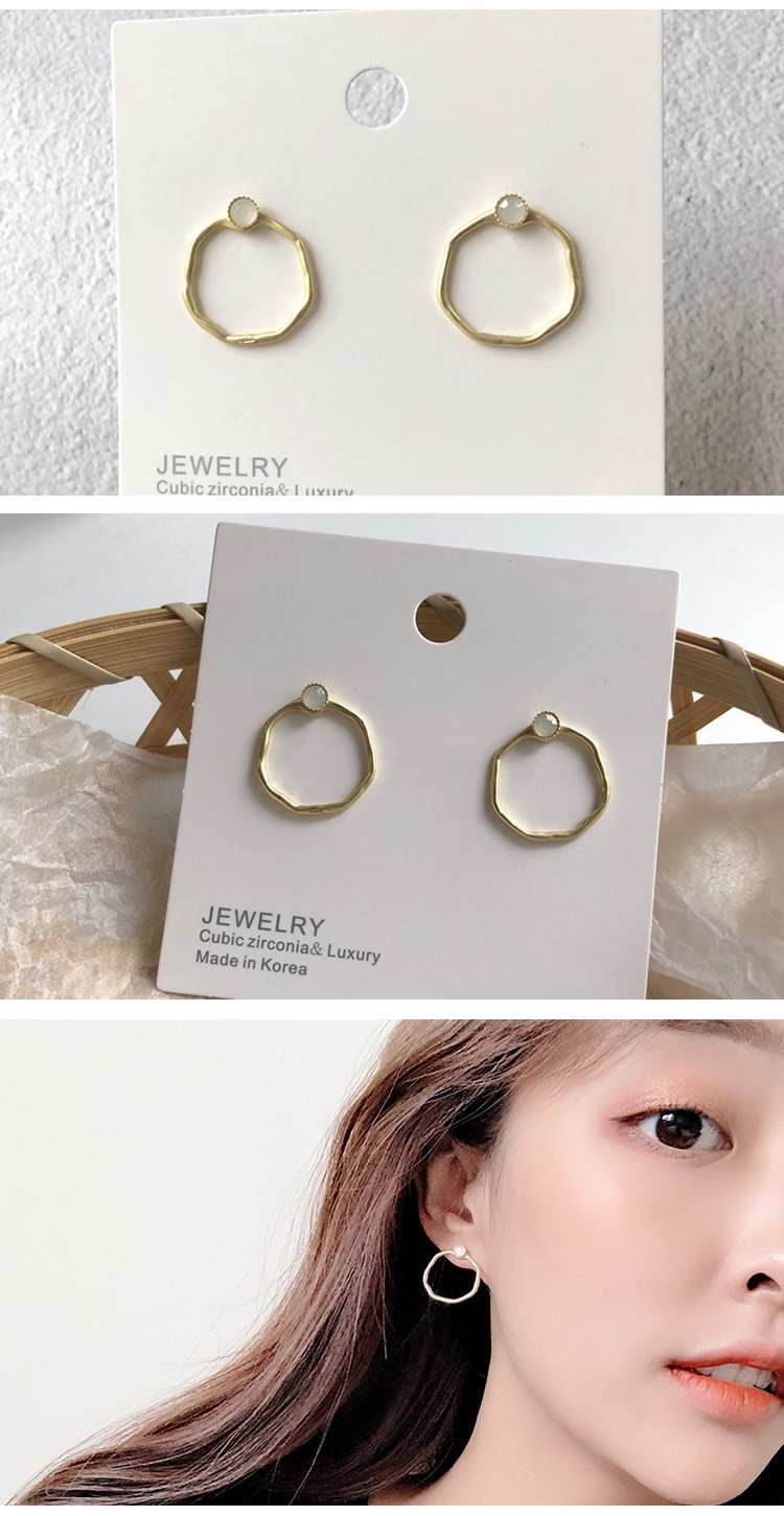 【INES】韓國設計S925銀針幾何不規則圓環寶石造型耳環