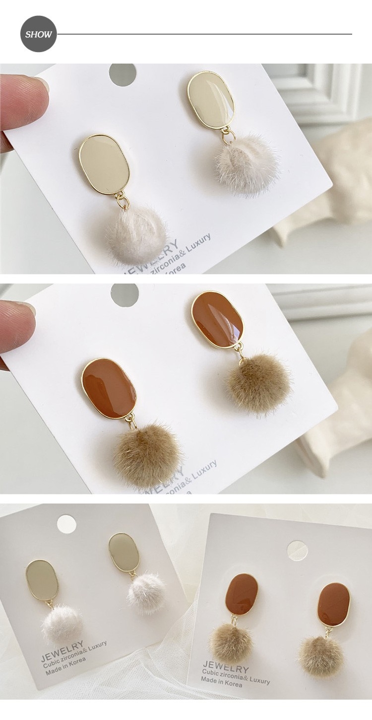 【INES】韓國設計S925銀針法式復古簡約氣質滴釉小毛球造型耳環 (2色任選)