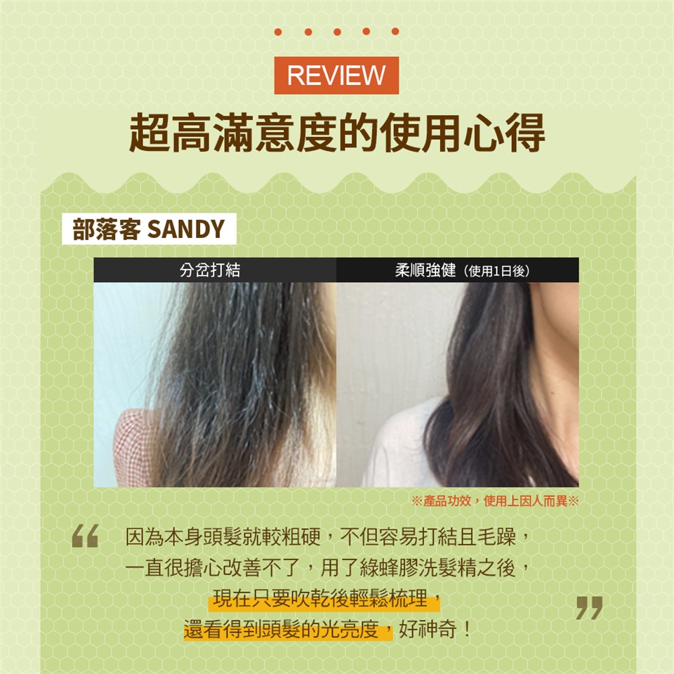 綠蜂膠、蜂王漿萃取,秀髮頂級呵護饗宴!!