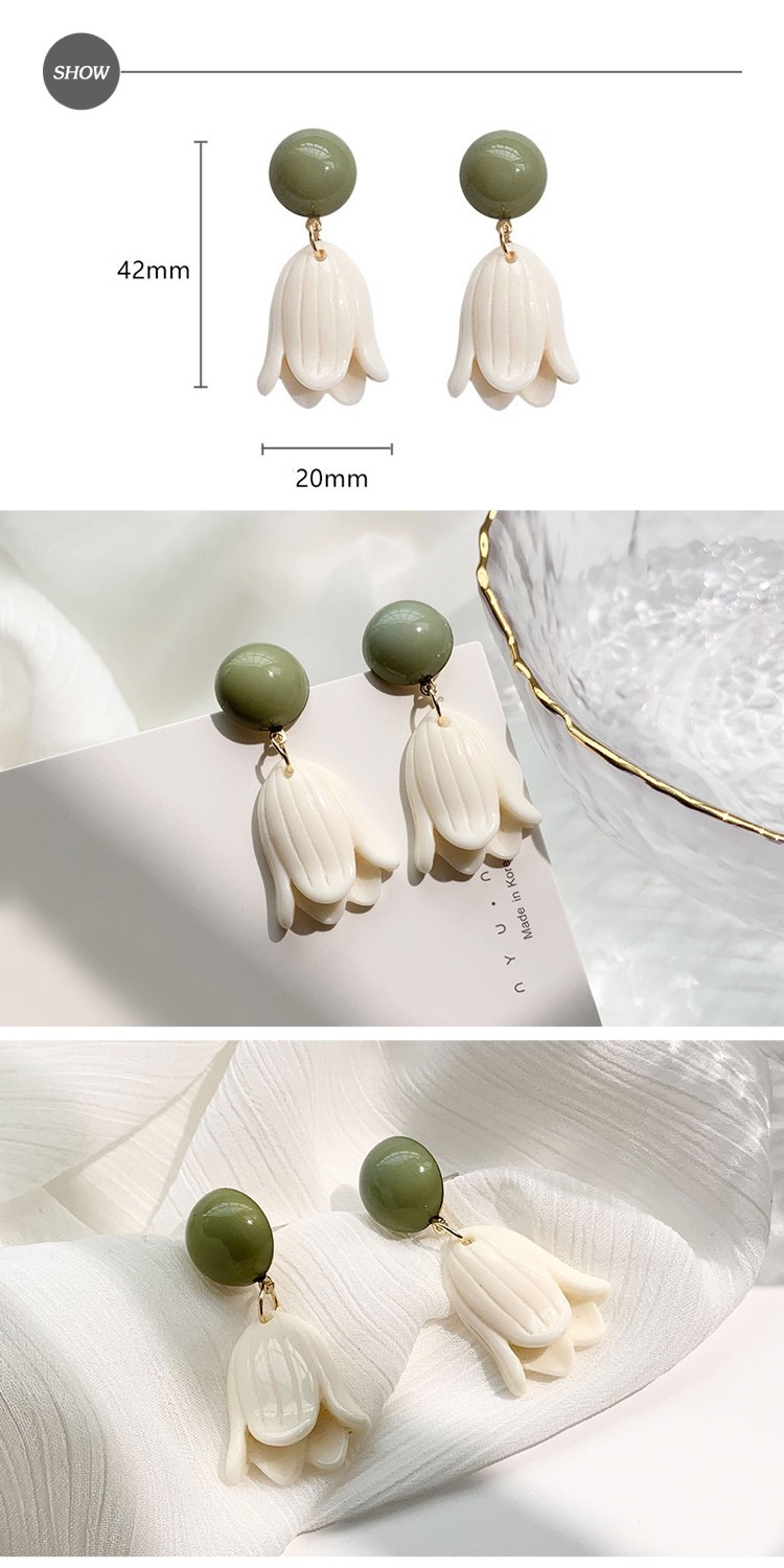 【INES】韓國設計S925銀針法式優雅復古鬱金香花朵耳環