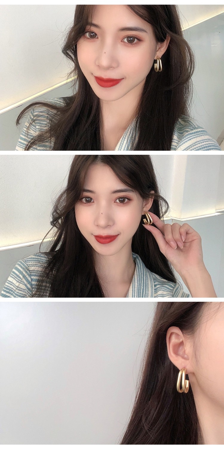 【00:00】韓國設計S925銀針幾何金屬勾勾線條造型耳環