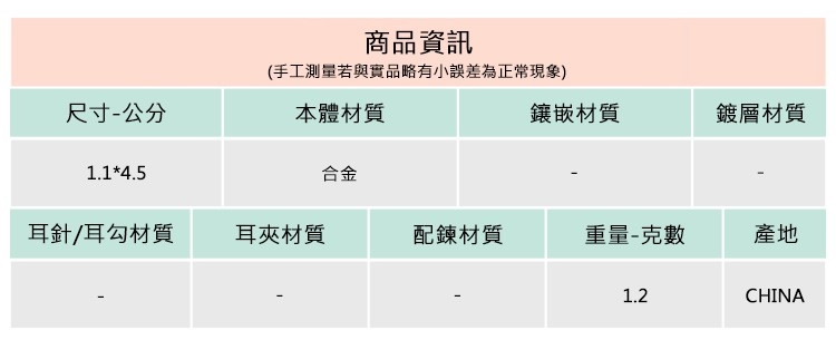 ◆合金飾品一經使用可能隨時間失去光澤或褪色,此為正常物理現象,妥善使用保存可延長飾品壽命。