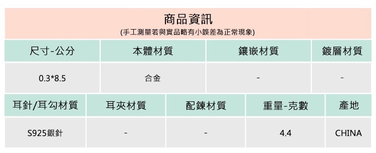 ◆合金飾品一經使用可能隨時間失去光澤或褪色,此為正常物理現象,妥善使用保存可延長飾品壽命。