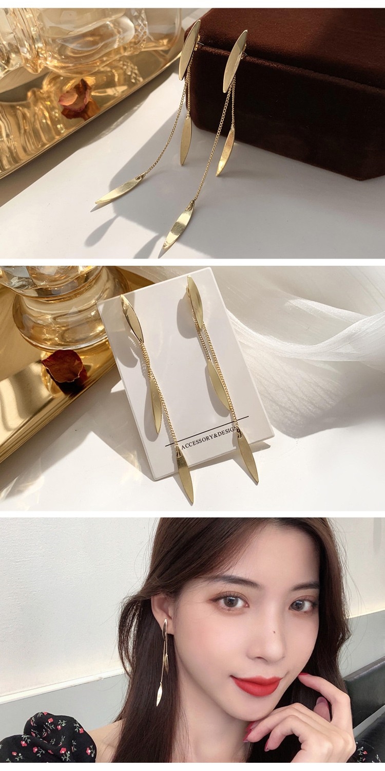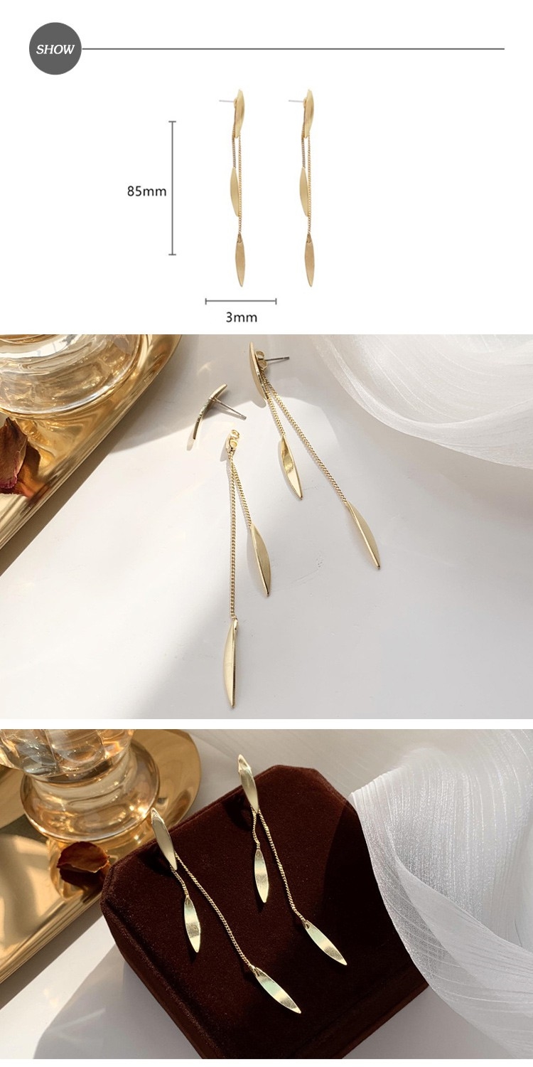 【00:00】韓國設計S925銀針個性復古葉片流蘇長耳環