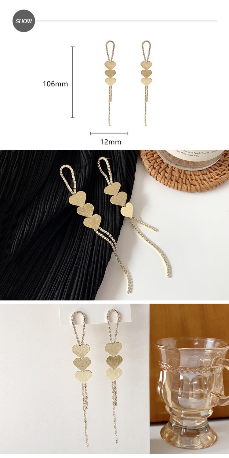 【SECRET BOX】韓國設計S925銀針氣質長款愛心鑽鍊流蘇耳環