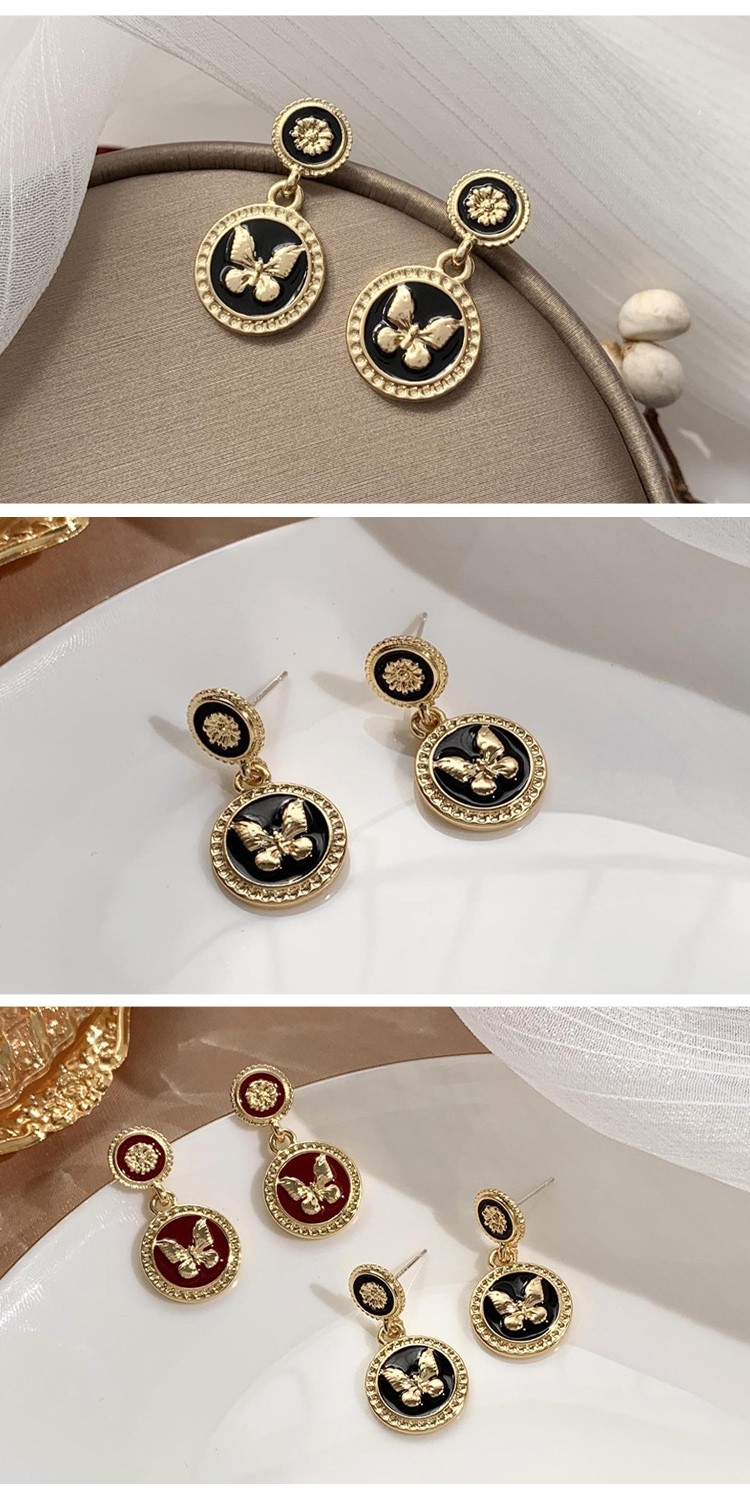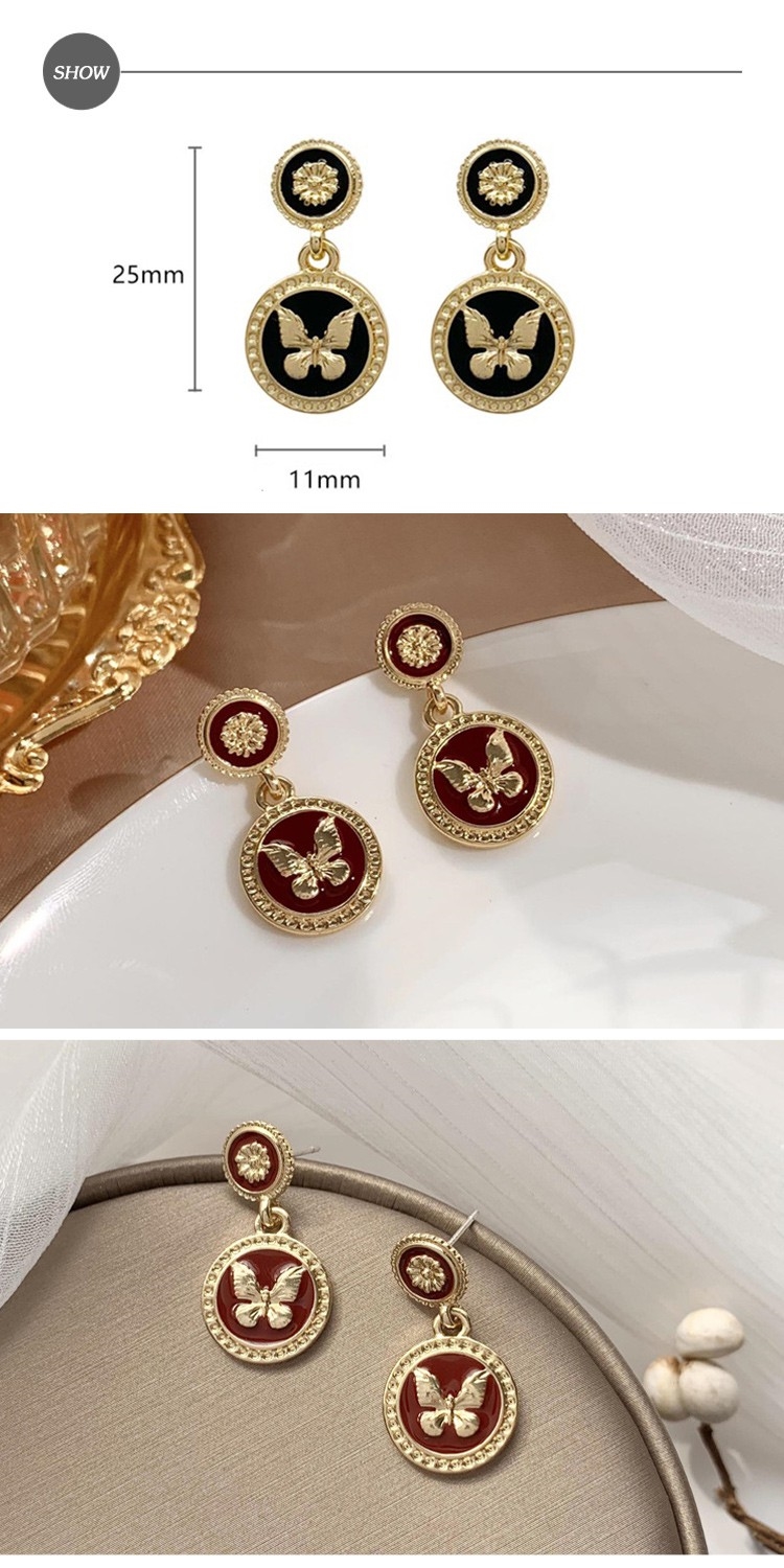 【SECRET BOX】韓國設計S925銀針復古歐式蝴蝶造型耳環 (2色任選)