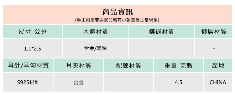◆耳環屬個人衛生用品,一經開封恕不退換。