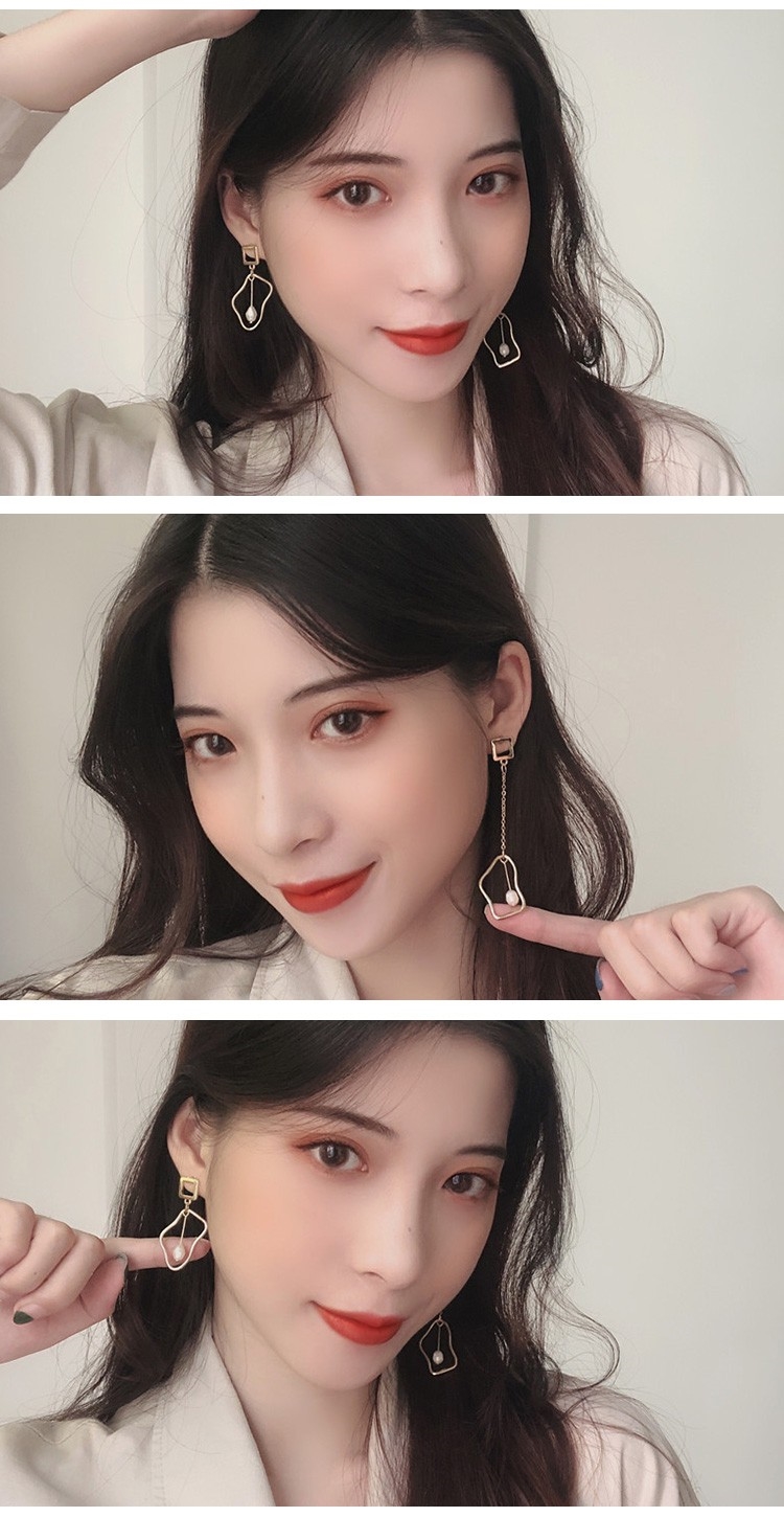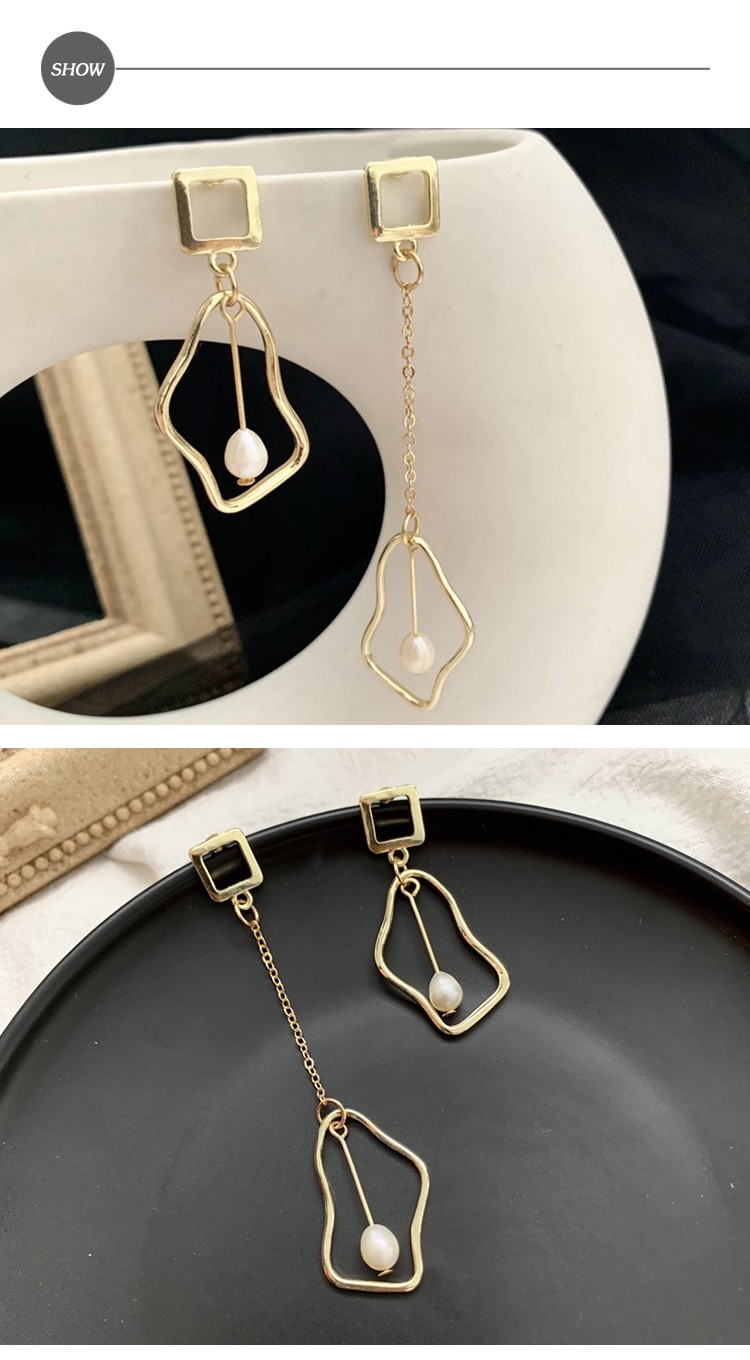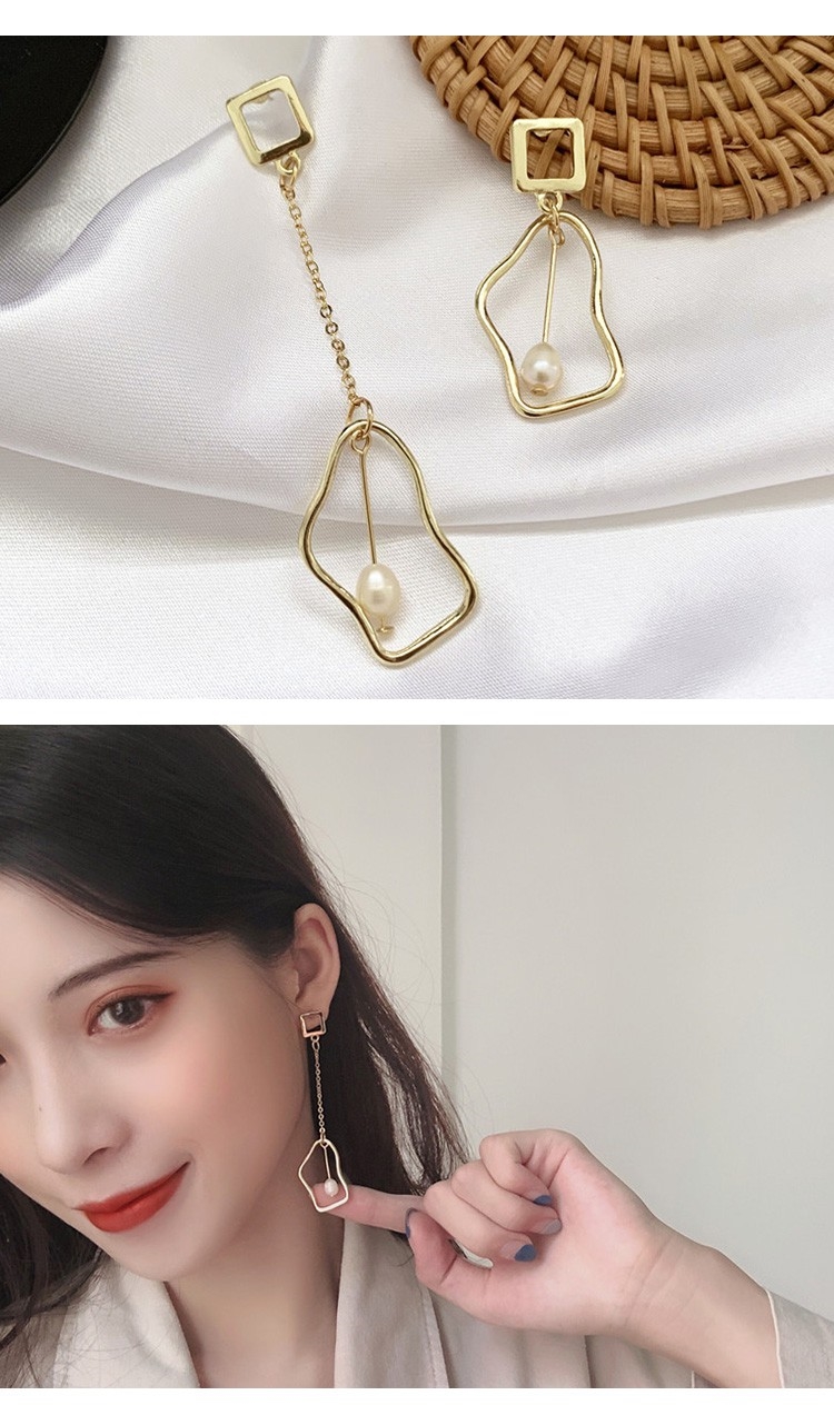 【INES】韓國設計S925銀針不規則金屬縷空幾何形狀珍珠長耳環