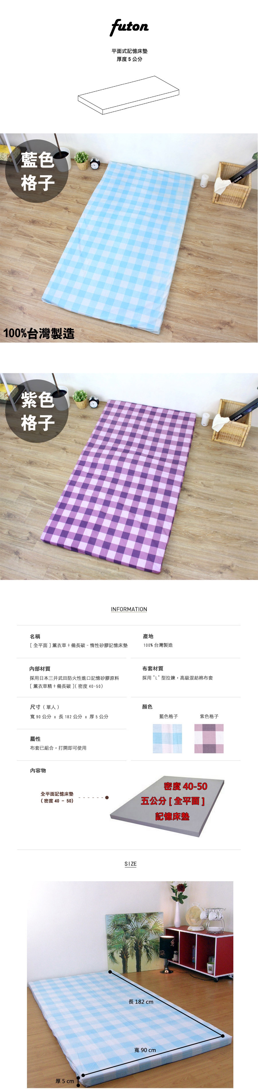 ◆床墊厚度達5公分一體成型,內層材料採用[密度40-50]薰衣草+備長碳惰性矽膠記憶棉,透氣性佳不悶熱,台灣製造品質保證。