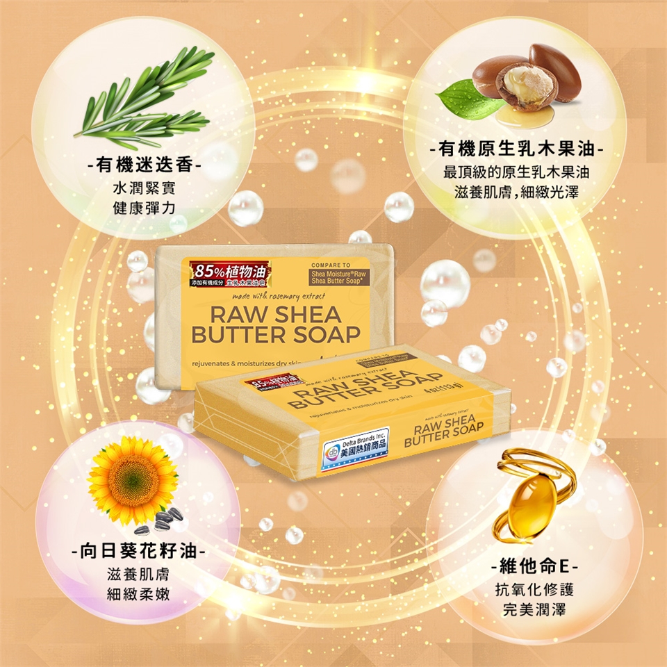 2.未精煉的有機原生乳木果油保有完整的營養成份,有效潤澤,讓肌膚平滑細緻,在肌膚表層形成保護膜,避免乾燥不適
