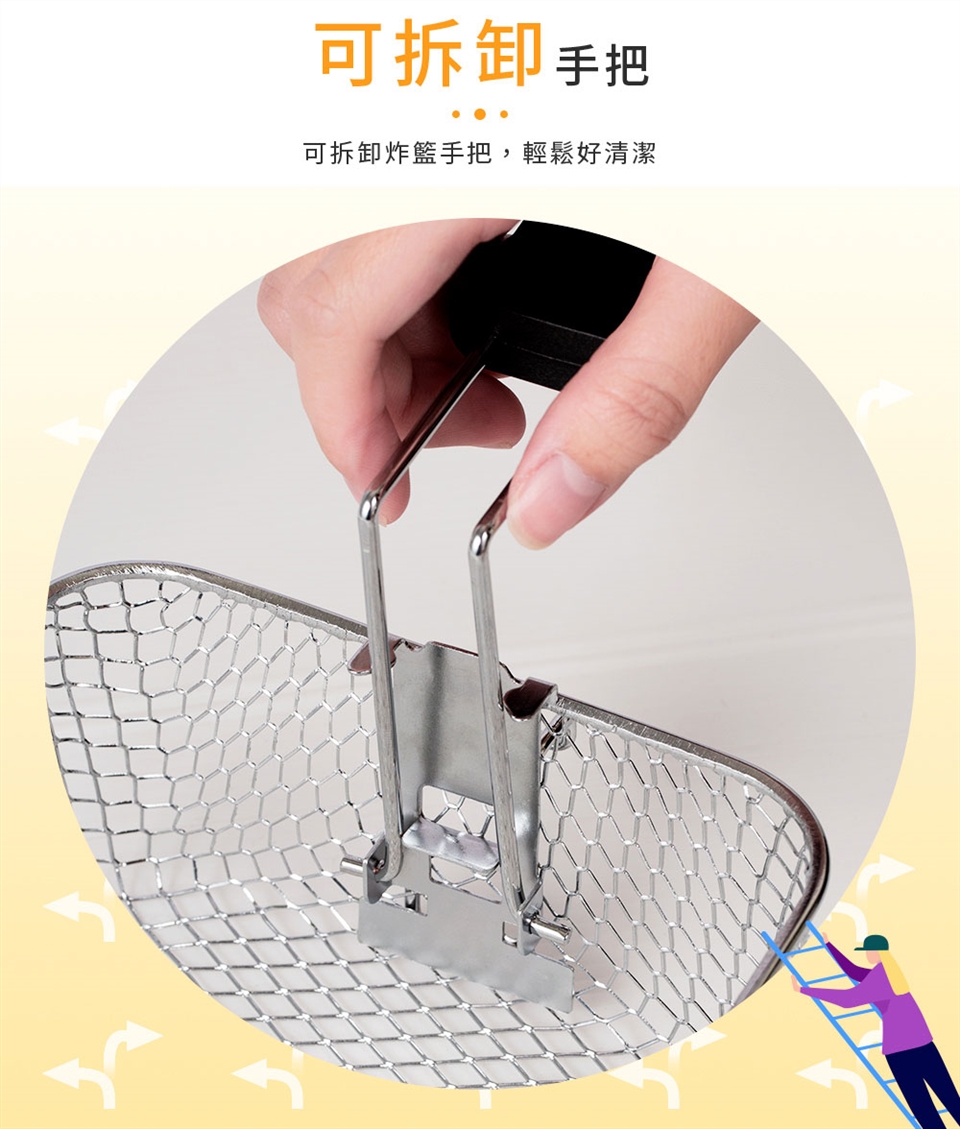 ◆不沾油鍋鍋體+分離式炸籃手把可拆卸,易於清潔更衛生。