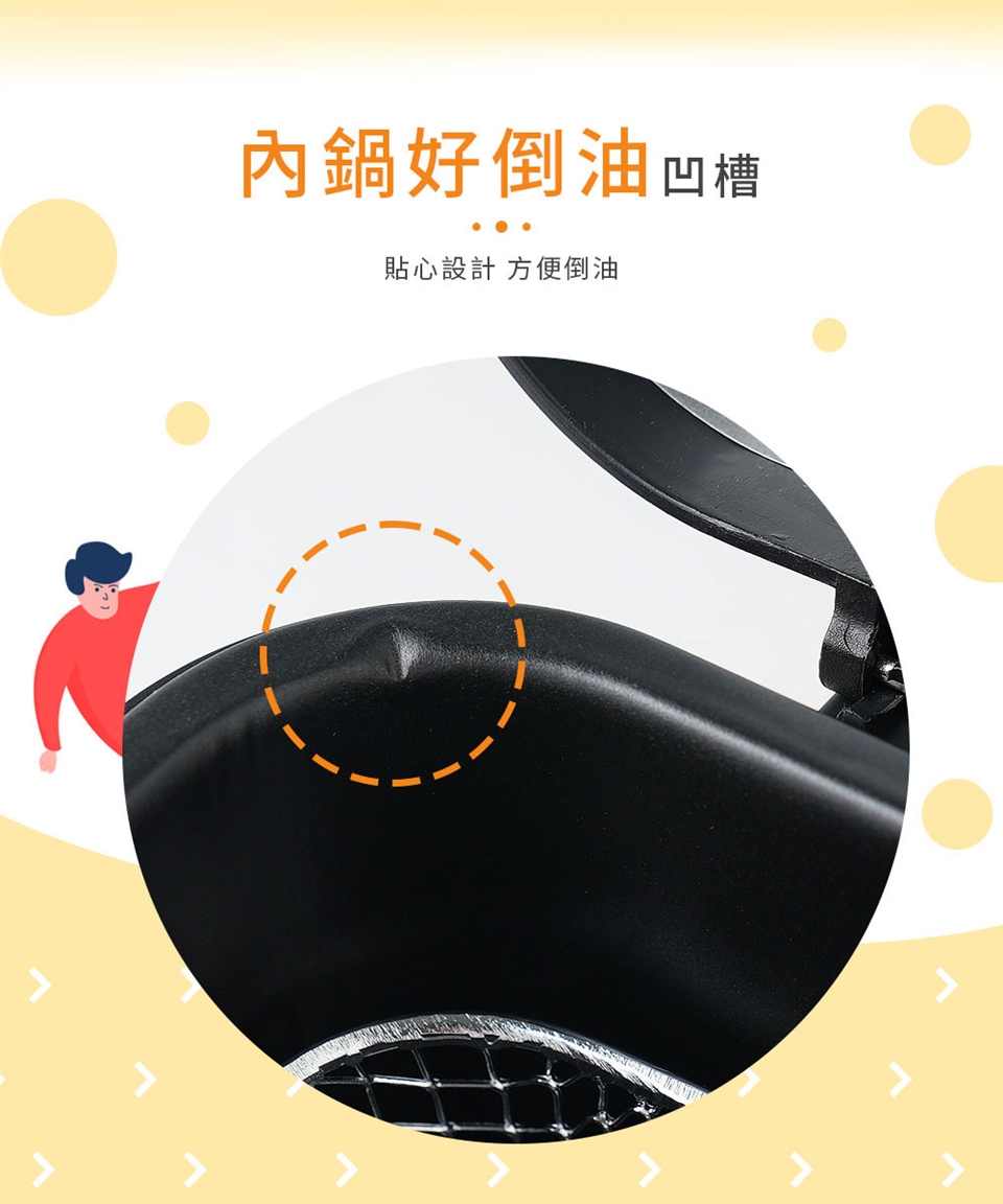 ◆內鍋好倒油凹槽,貼心設計,方便倒油。