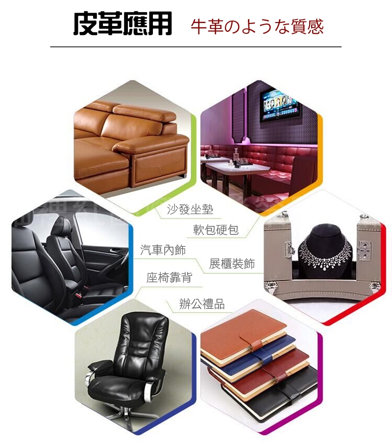 用途:適用於各種沙發皮椅、汽車內飾、KTV包廂座椅、牆面、卡座、室內背景軟包硬包,床頭家居皮製品翻新修補