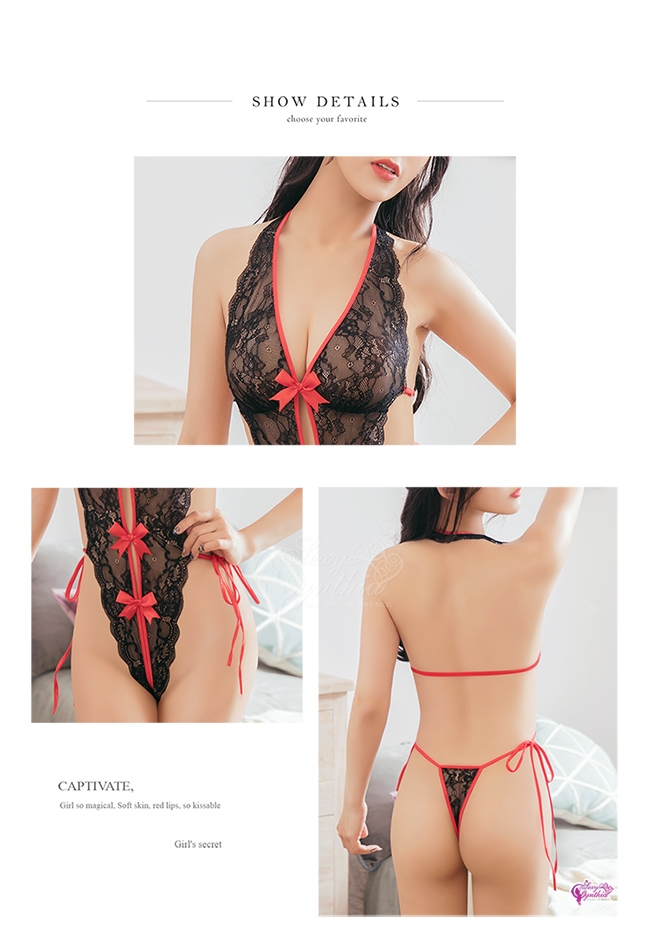 ◆ 衣長:約62公分(不含肩帶),肩帶採繞脖式設計,背部綁帶長度可調整,臀後丁字褲採綁帶式設計