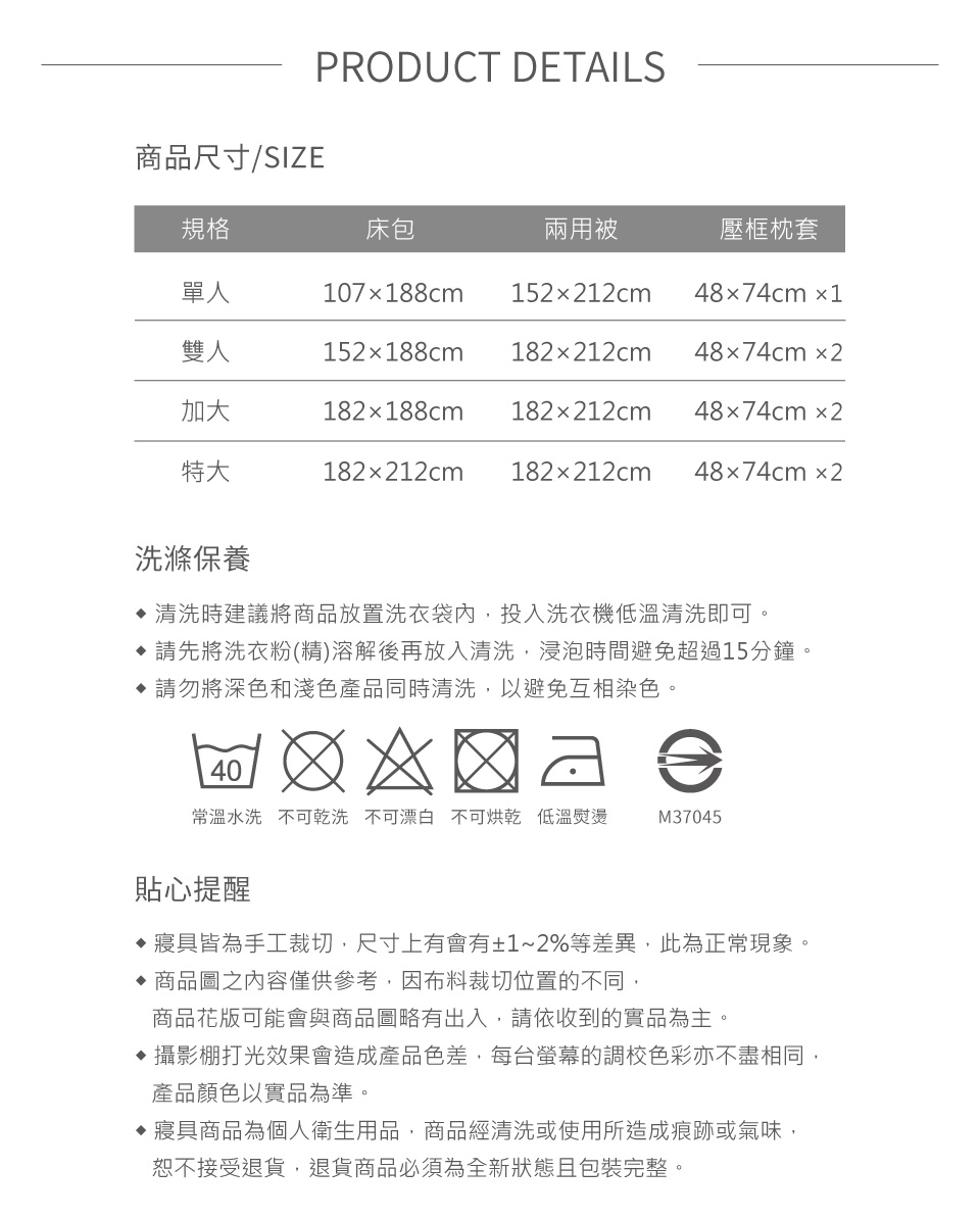 床包組,注意浸泡時間不要超過20分鐘。(深色布料請勿浸泡)