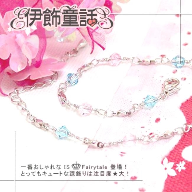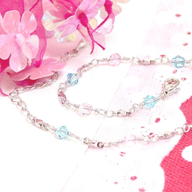 甜美粉紅及粉藍的水晶,串連而成的繽紛水晶腳鍊,