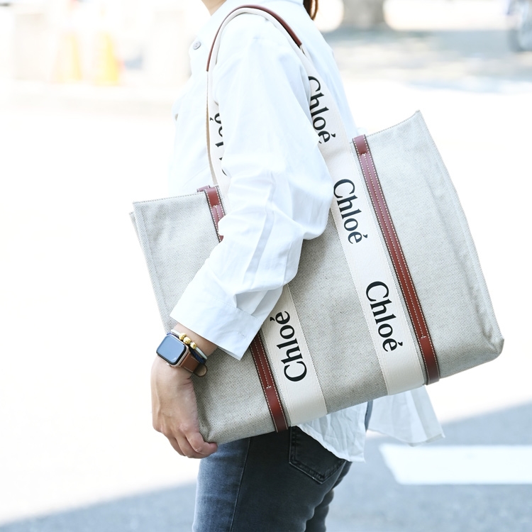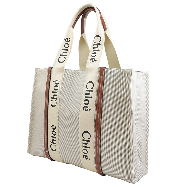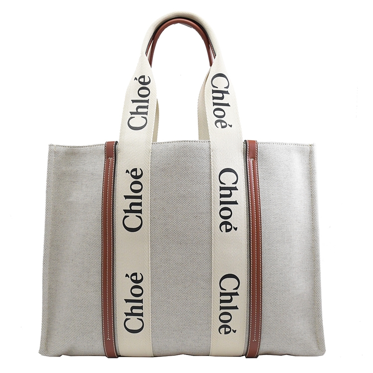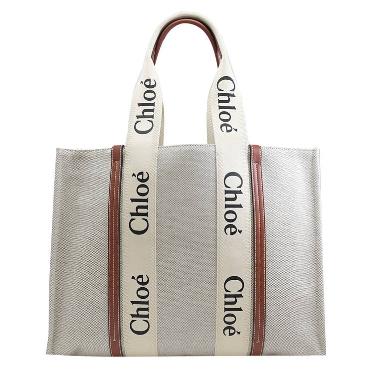CHLOE Woody系列,此款為CHLOE熱銷Woody系列肩背托特包,質感帆布與精典品牌logo織帶設計,內可放A4文件、雨傘、長夾等隨身物品,不用大包小包,一包搞定,外出出遊皆合適,顯出休閒愜意的時尚風格,搶眼又好搭。