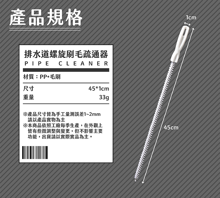 排水道螺旋刷毛疏通器(3入)