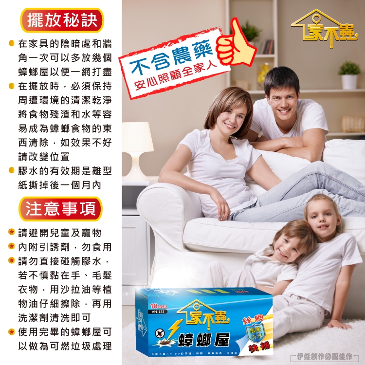 1.在家具的陰暗處和牆角一次可以多放幾個蟑螂屋以便一網打盡