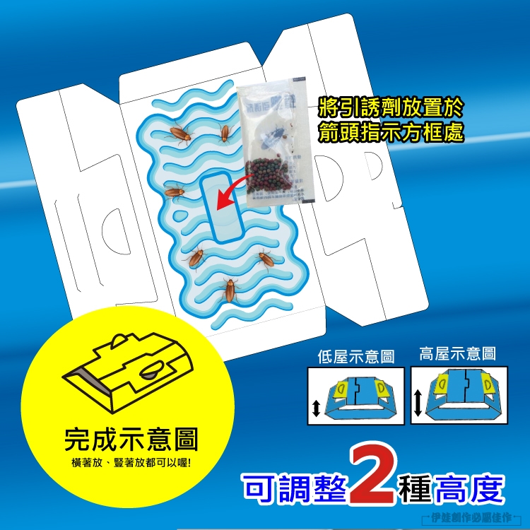 2.在擺放時,必須保持周遭環境的清潔乾淨,將食物殘渣和水等容易成為蟑螂食物的東西清除,如效果不好請改變位置