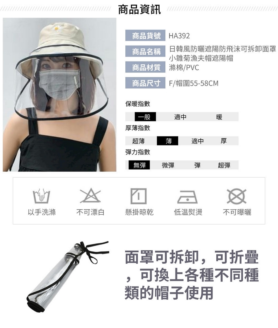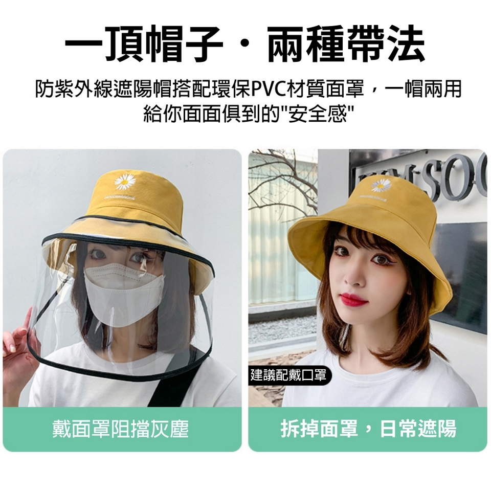 日韓風防曬遮陽防飛沫可拆卸面罩小雛菊漁夫帽遮陽帽