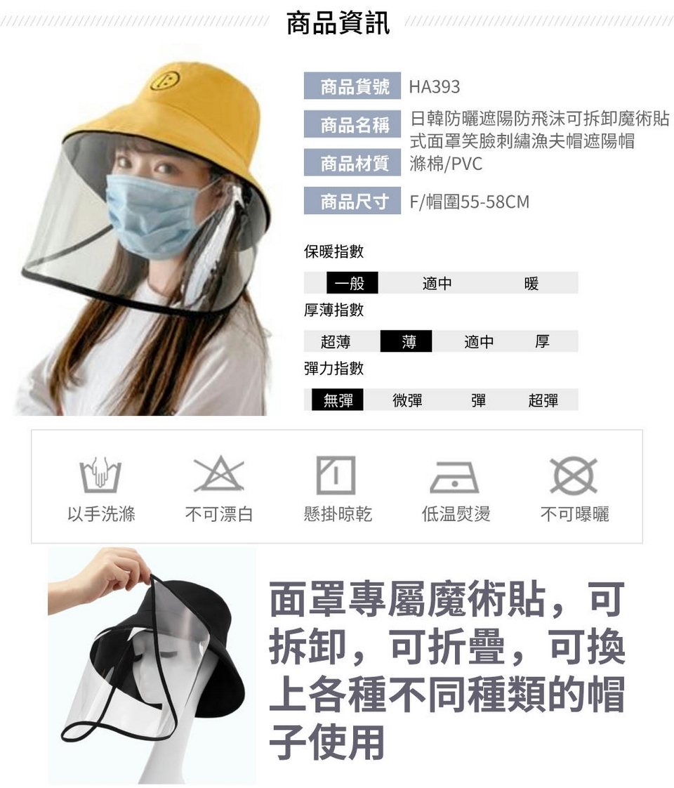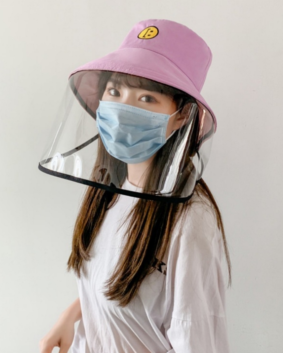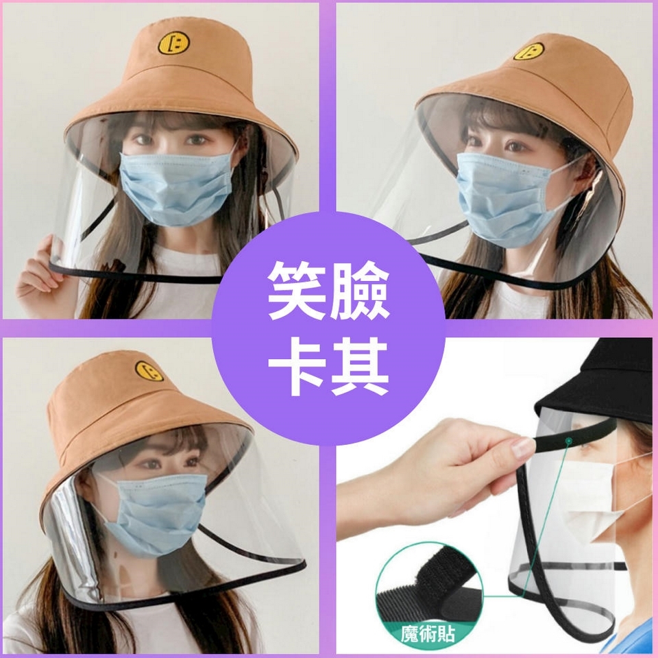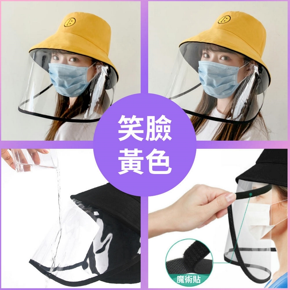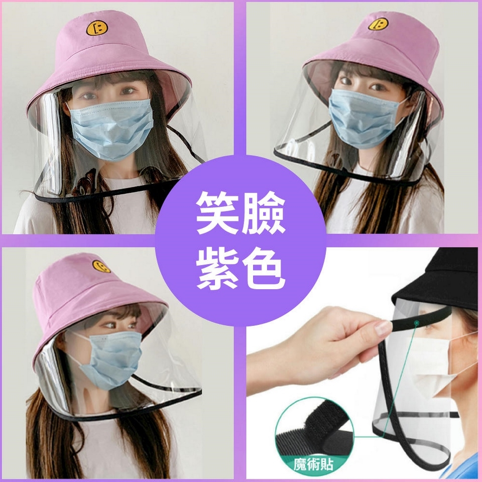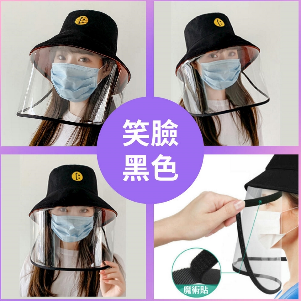 日韓防曬遮陽防飛沫可拆卸魔術貼式面罩笑臉刺繡漁夫帽遮陽帽