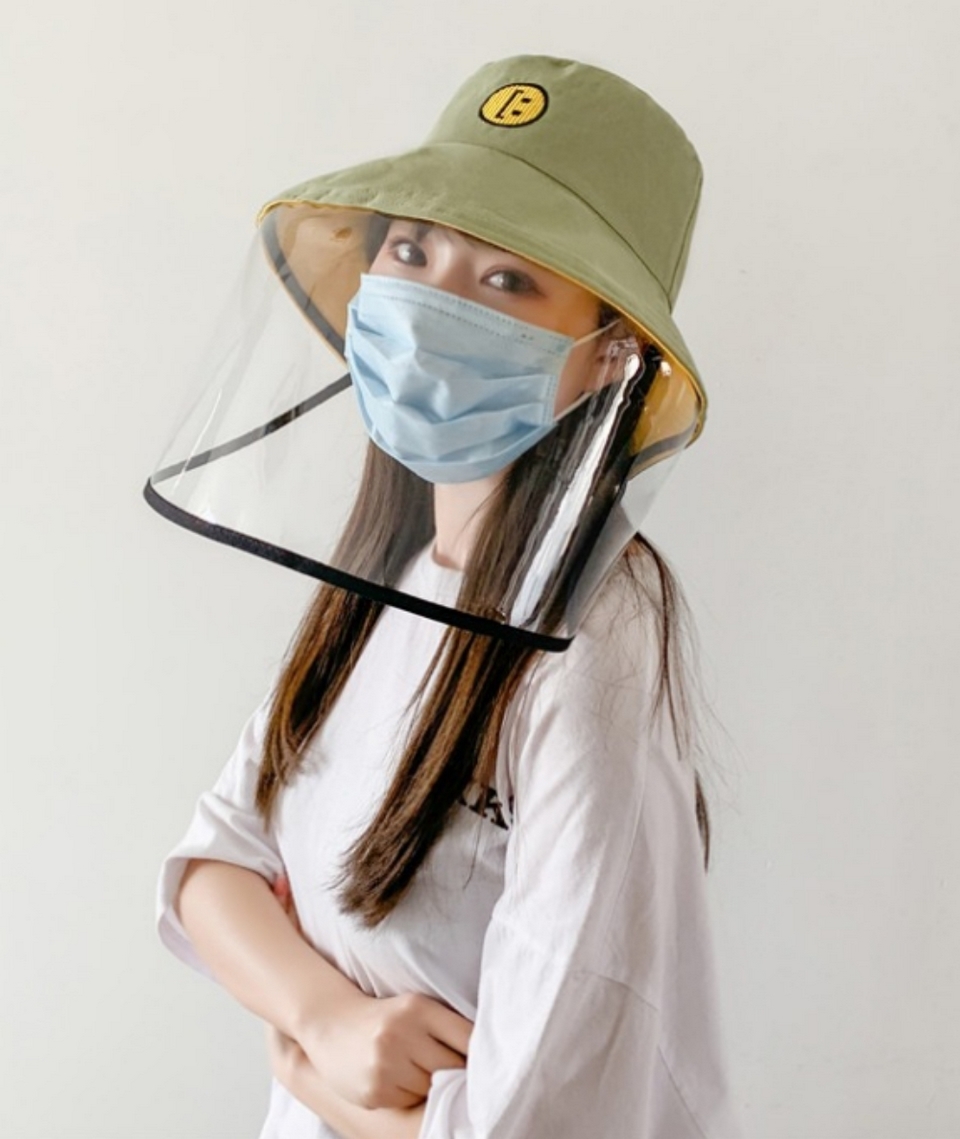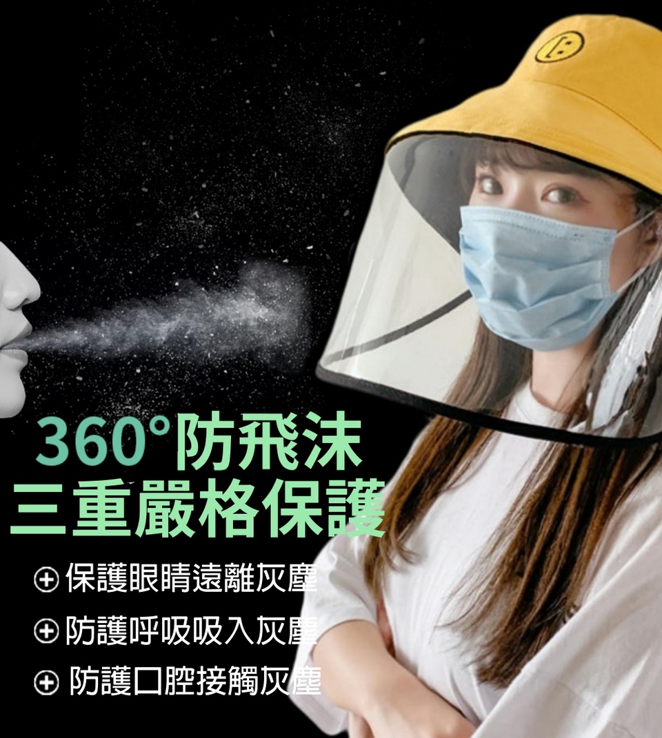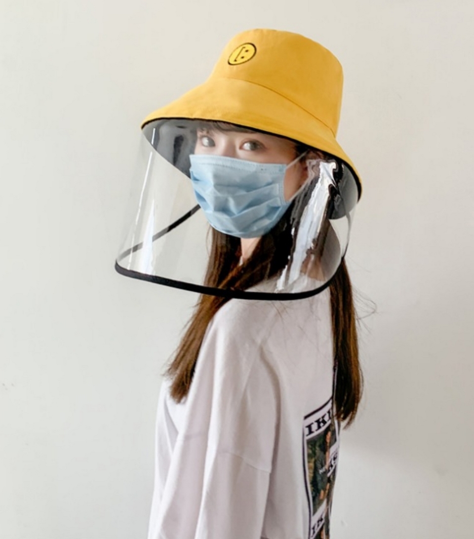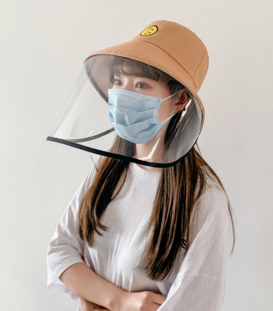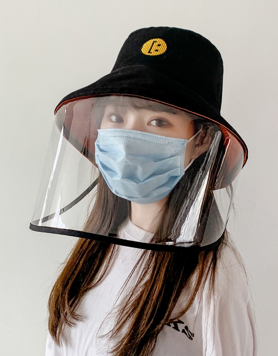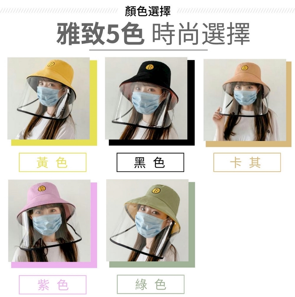 日韓防曬遮陽防飛沫可拆卸魔術貼式面罩笑臉刺繡漁夫帽遮陽帽