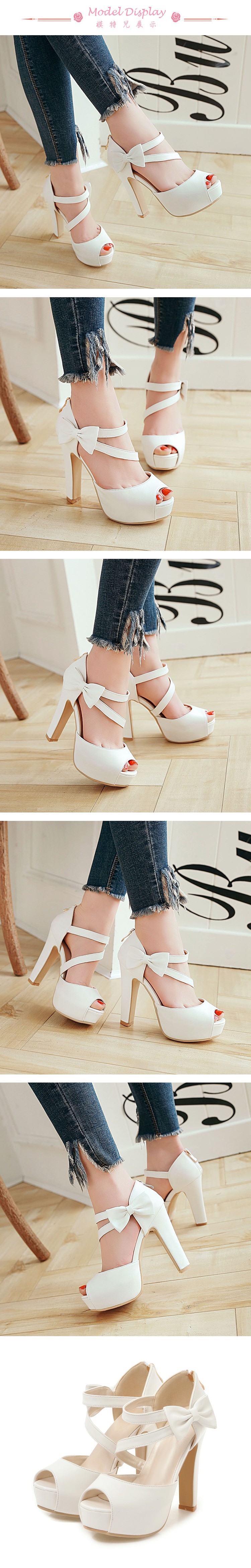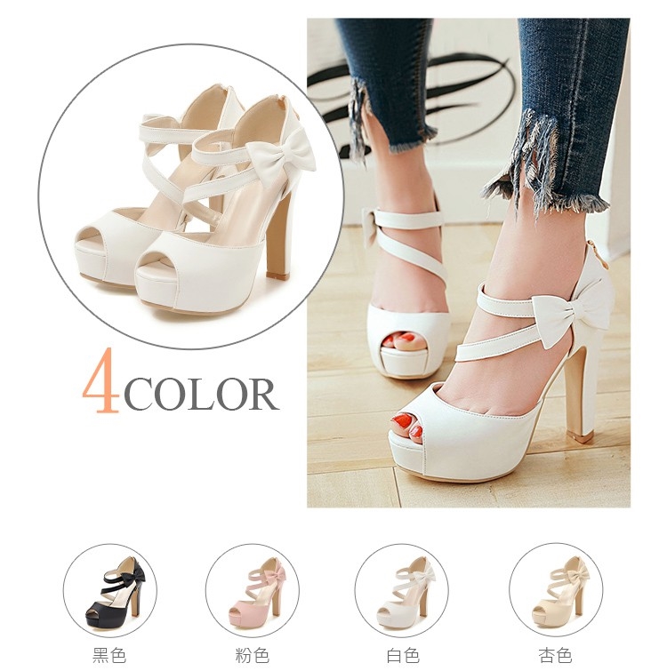【Kissxxx】蝴蝶結涼鞋魚口涼鞋/氣質蝴蝶結線條繞帶魚口露趾造型防水台高跟涼鞋 白