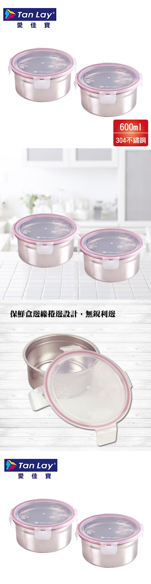 愛佳寶 圓型304不鏽鋼保鮮盒二入組600ml AKB-S600-2
