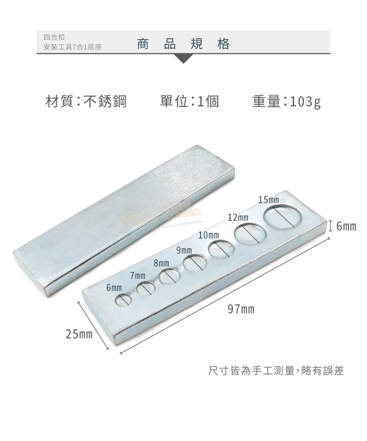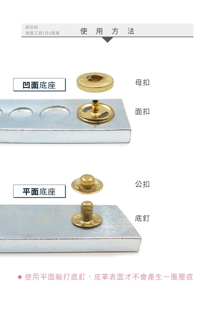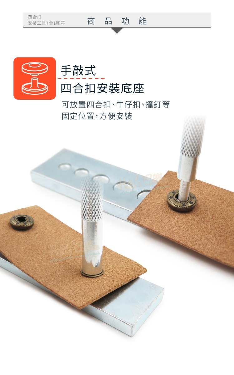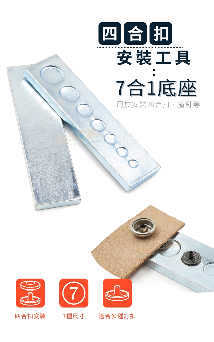 1.手敲式四合扣安裝底座,可放置四合扣、牛仔扣、撞釘等,