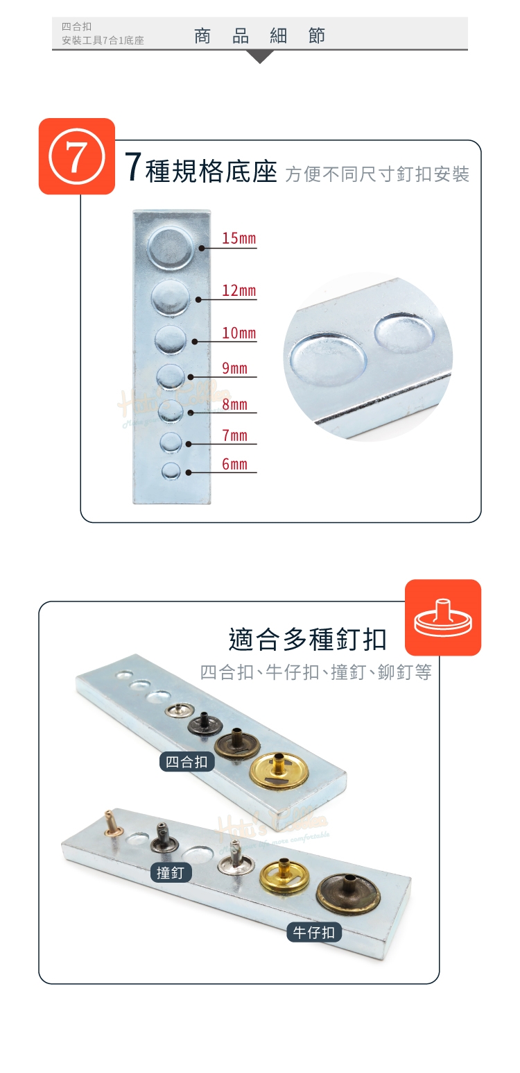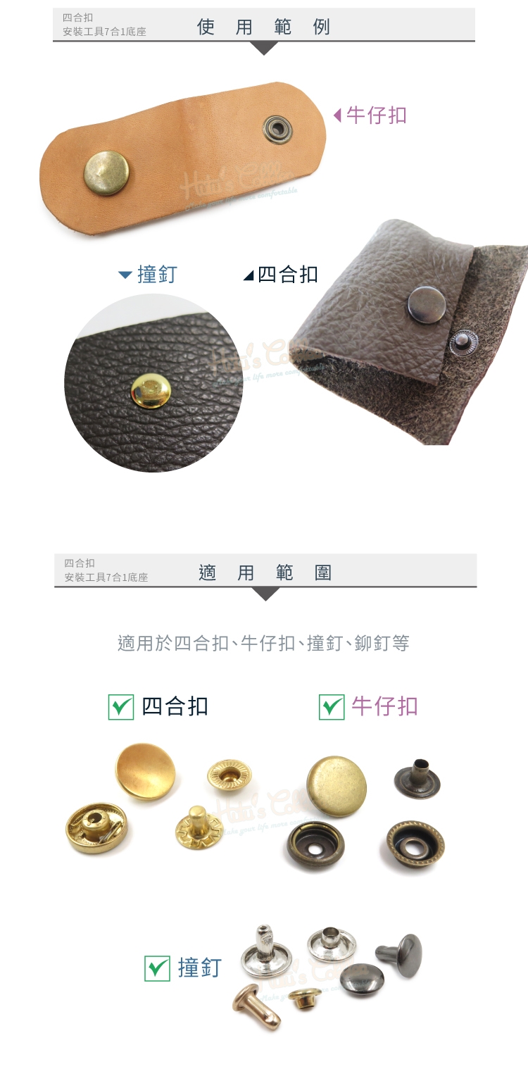 3.適合多種釘扣,四合扣、牛仔扣、撞釘、鉚釘等
