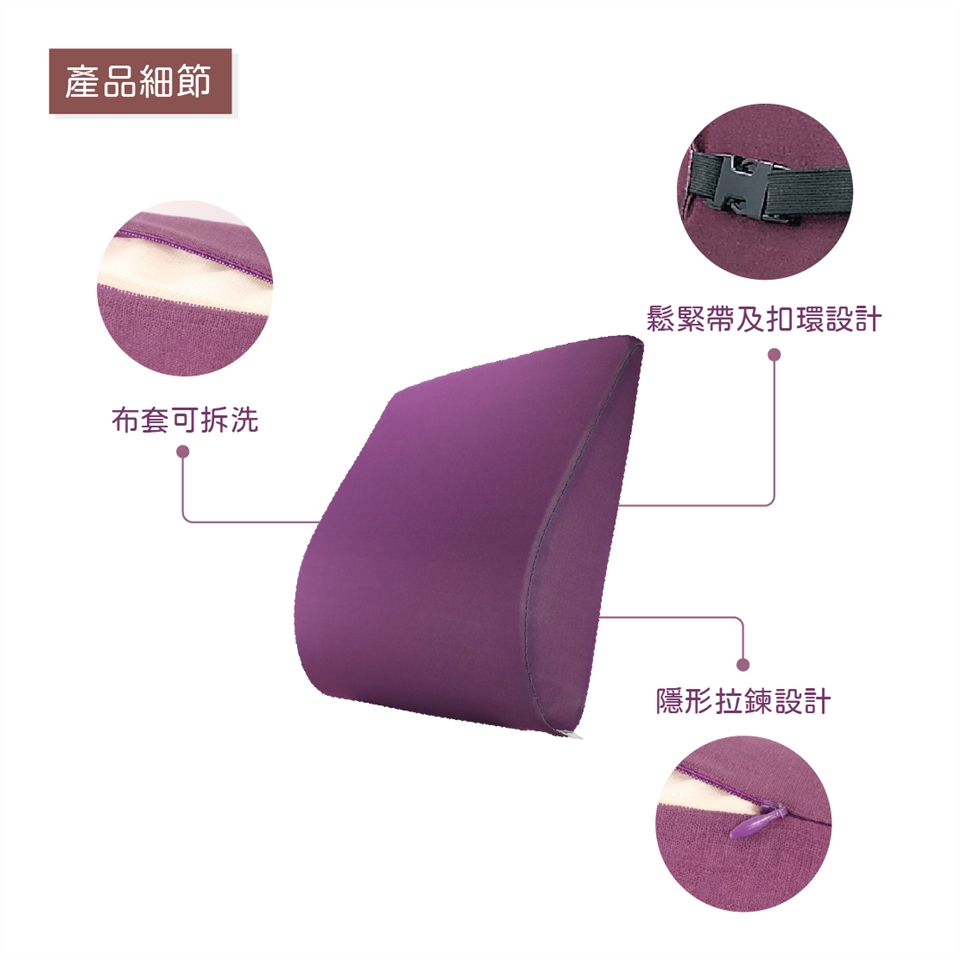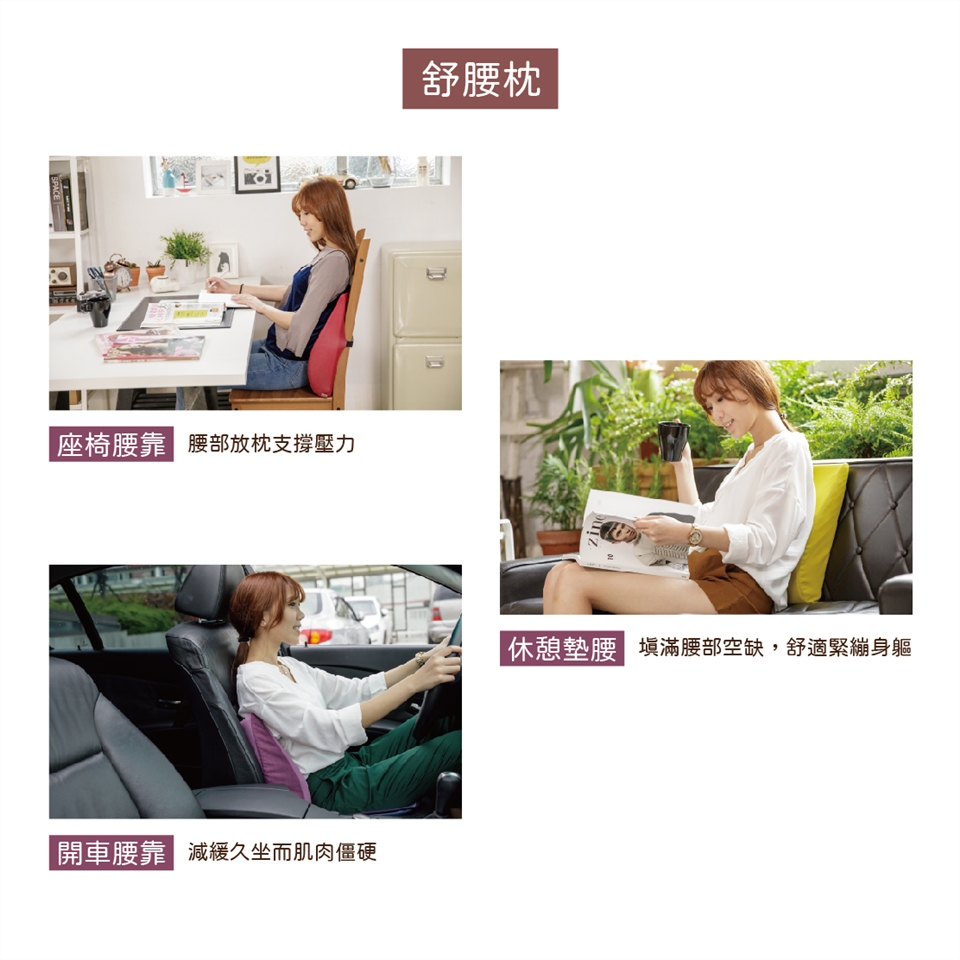 "減輕久坐所造成的負擔,完美服貼腰椎空隙,支撐脊椎壓力"