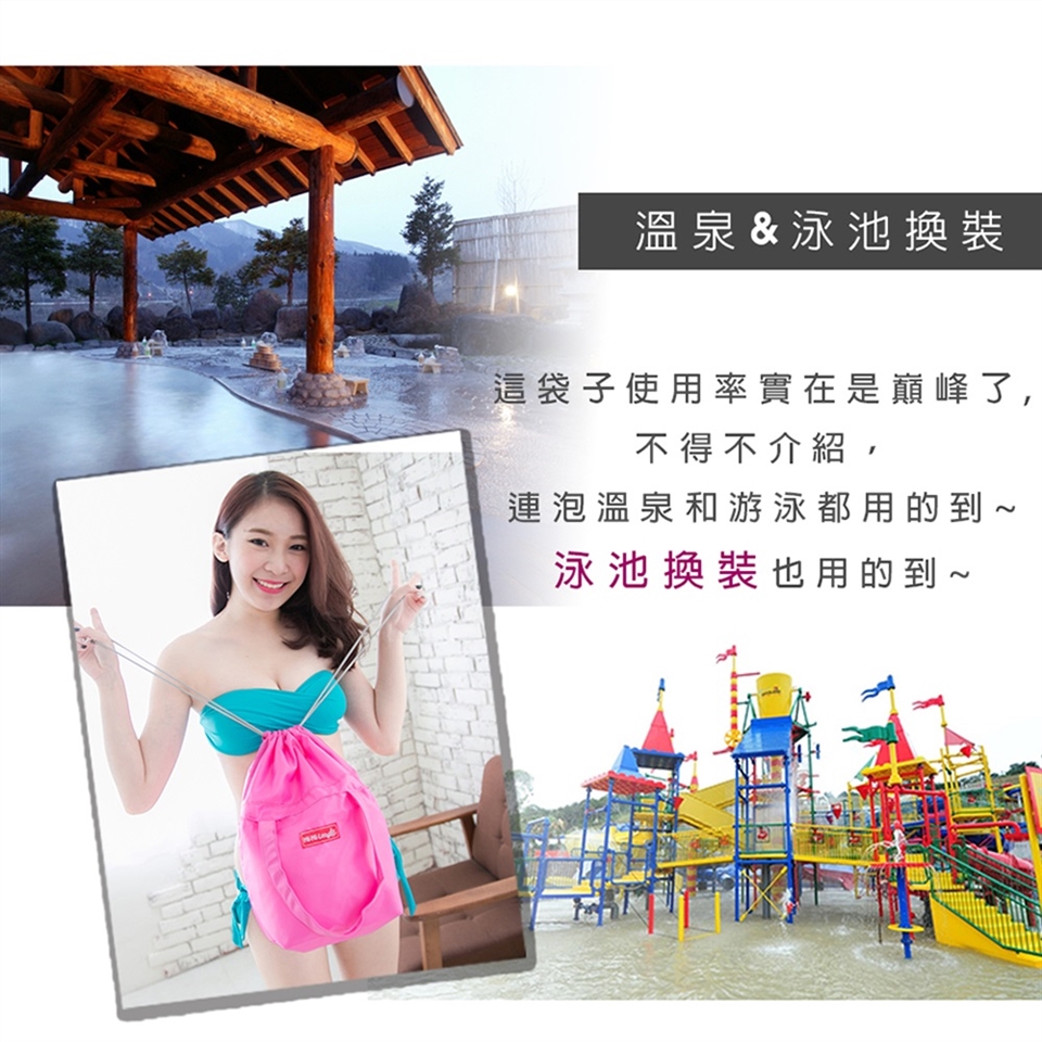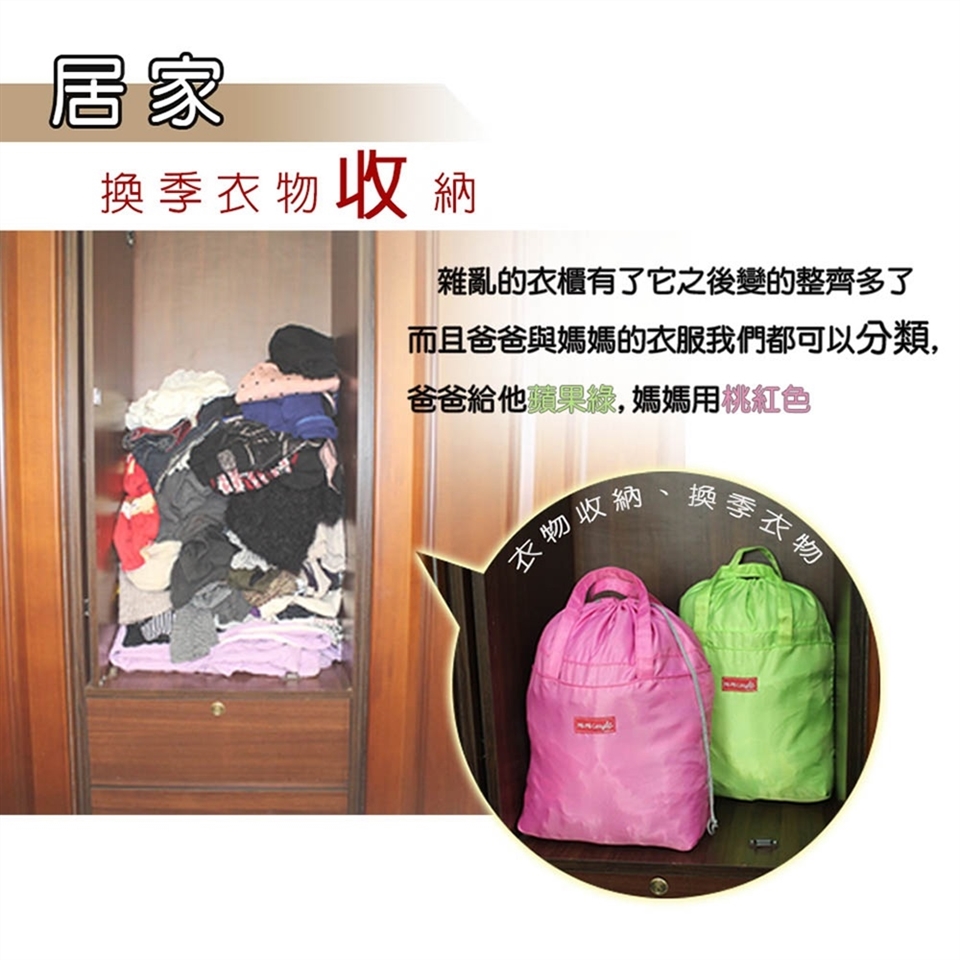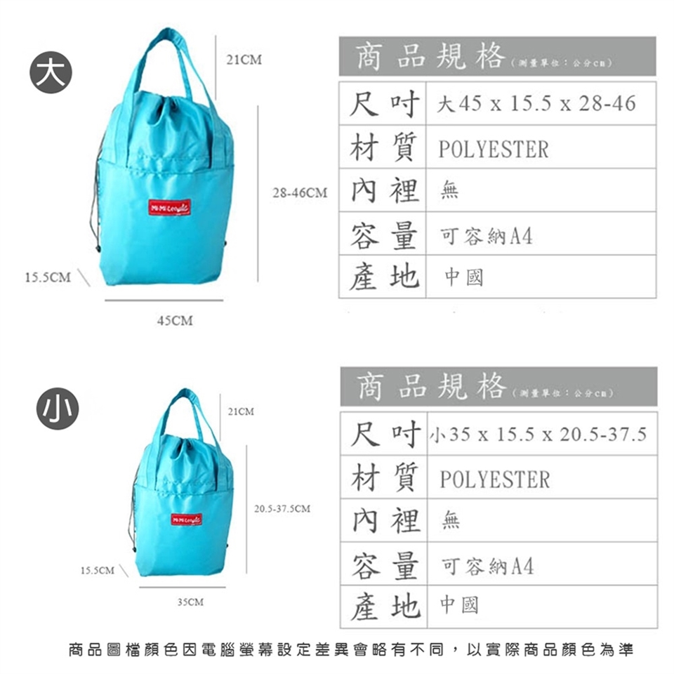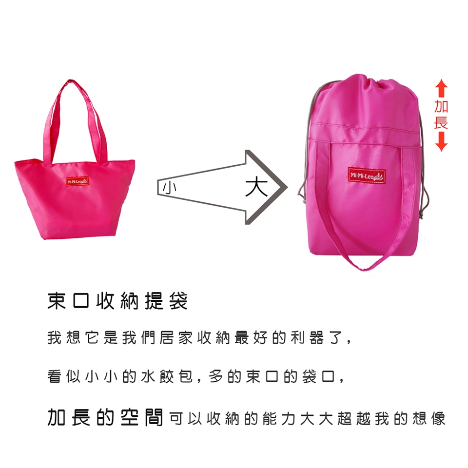 可直接當一般提袋使用,收納較多物品可將內裡加長,再束口。